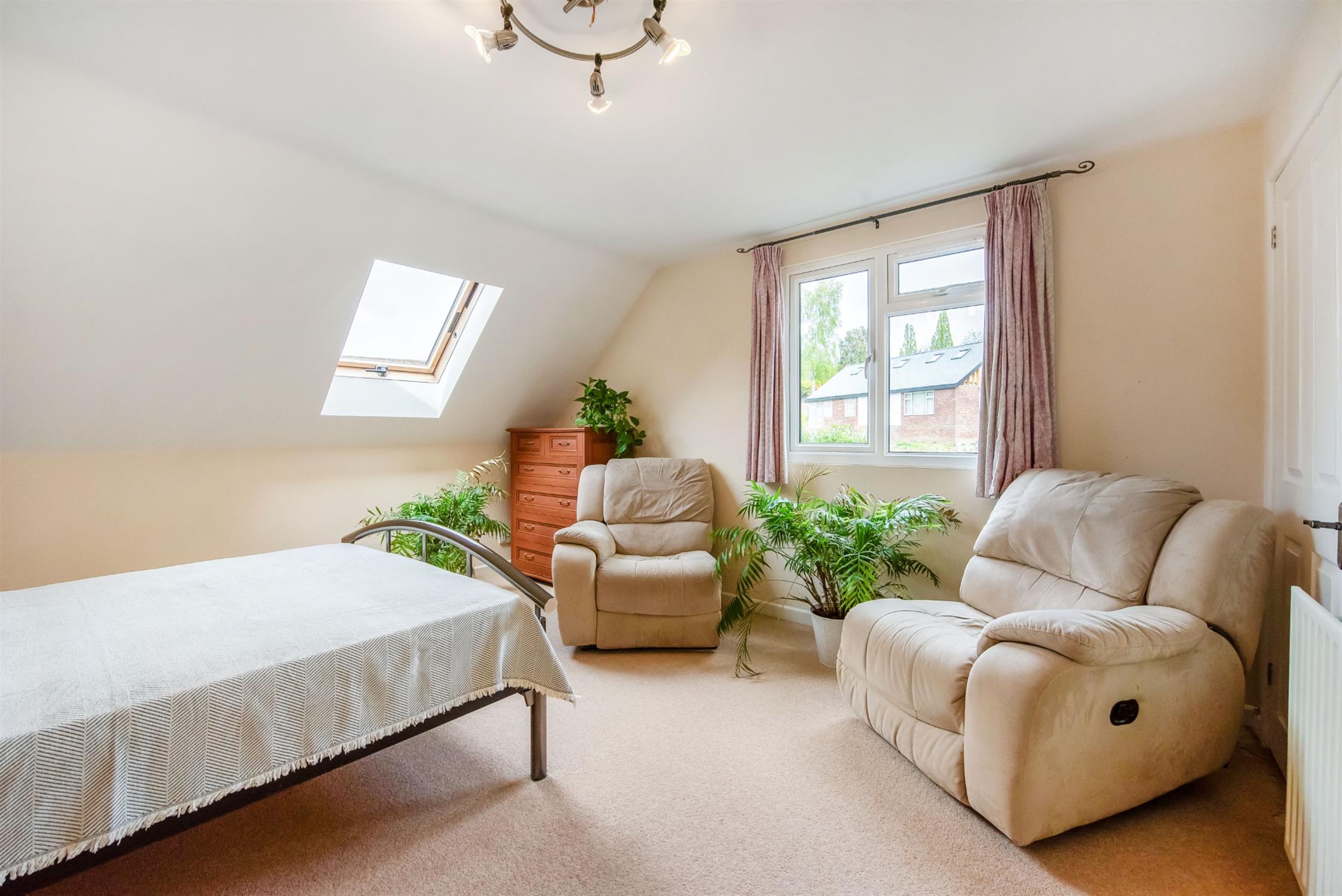 Double glazed Velux style window as well as additional double glazed window to front aspect. Radiator. Built-in storage cupboards. A range of built-in wardrobes providing additional useful storage.