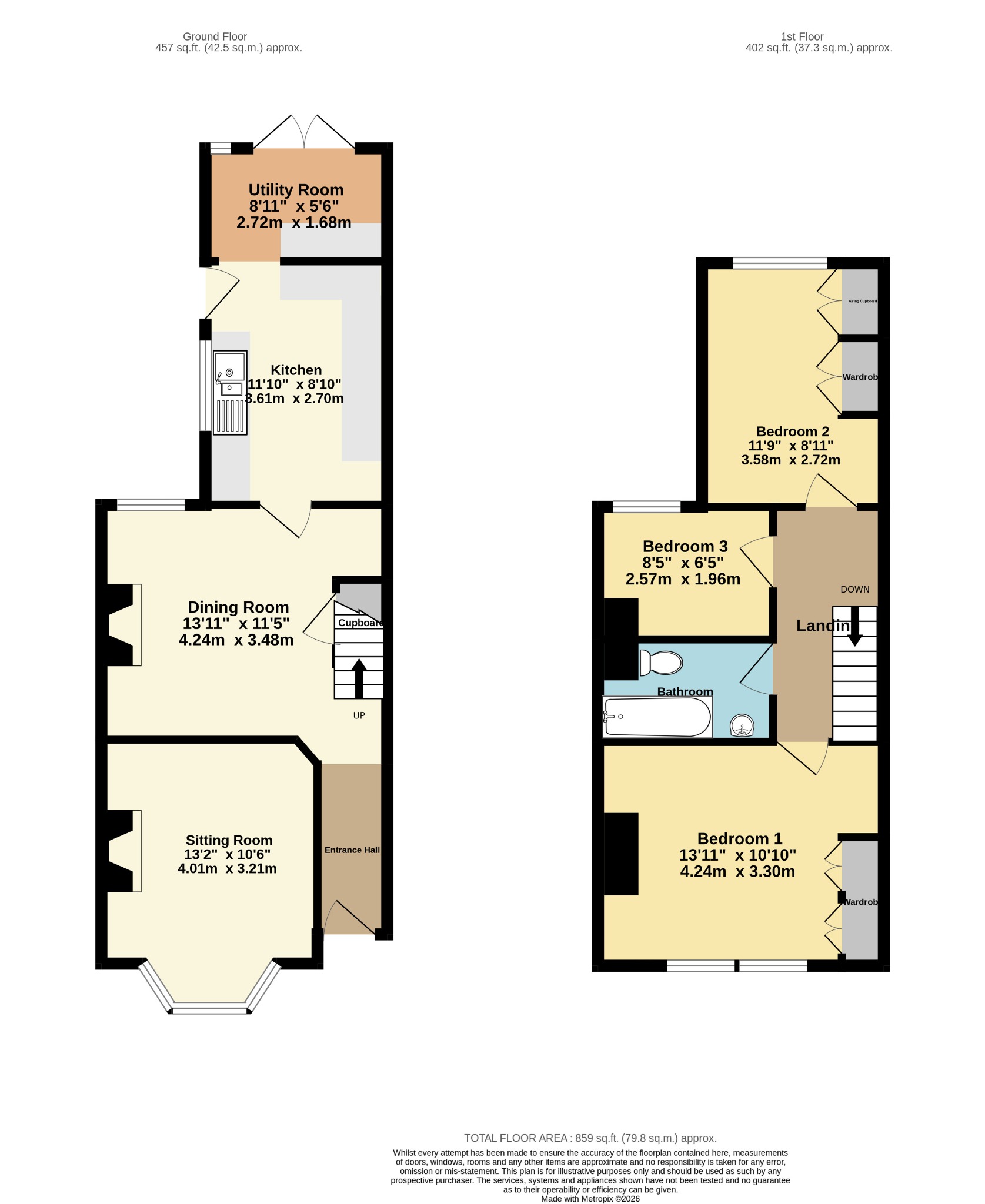 Double glazed window to rear aspect. Coving to smooth ceiling. Radiator. Airing cupboard housing boiler and hot water tank. Fitted cupboard.