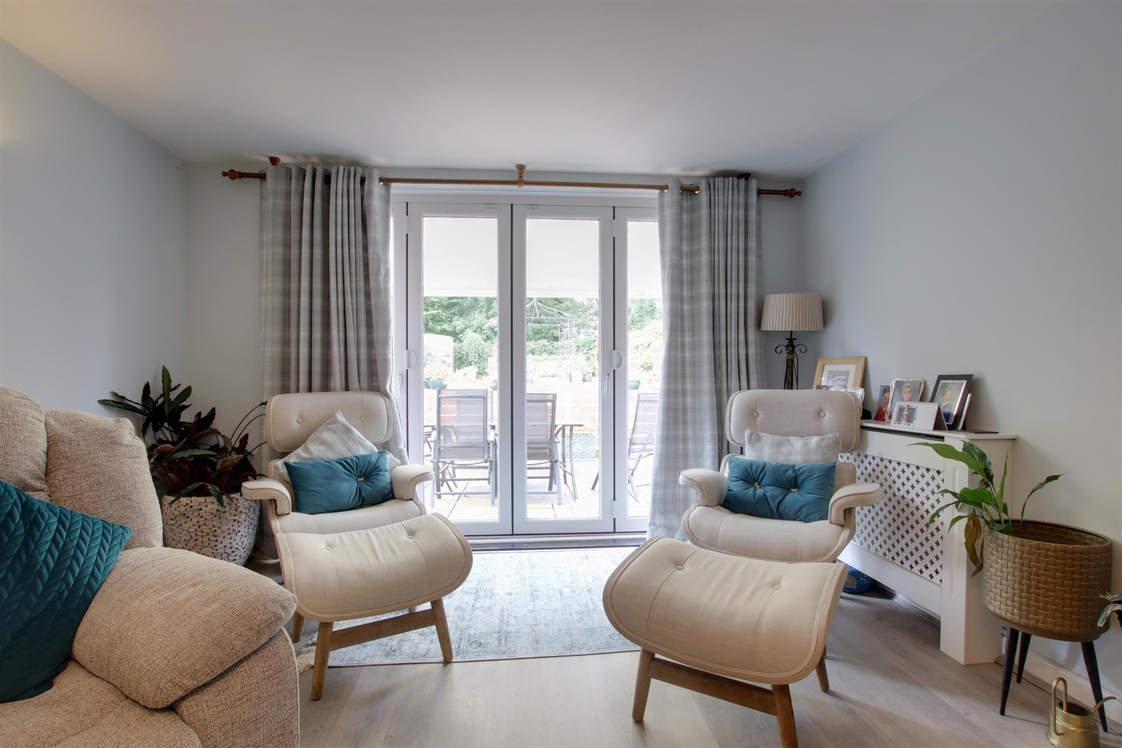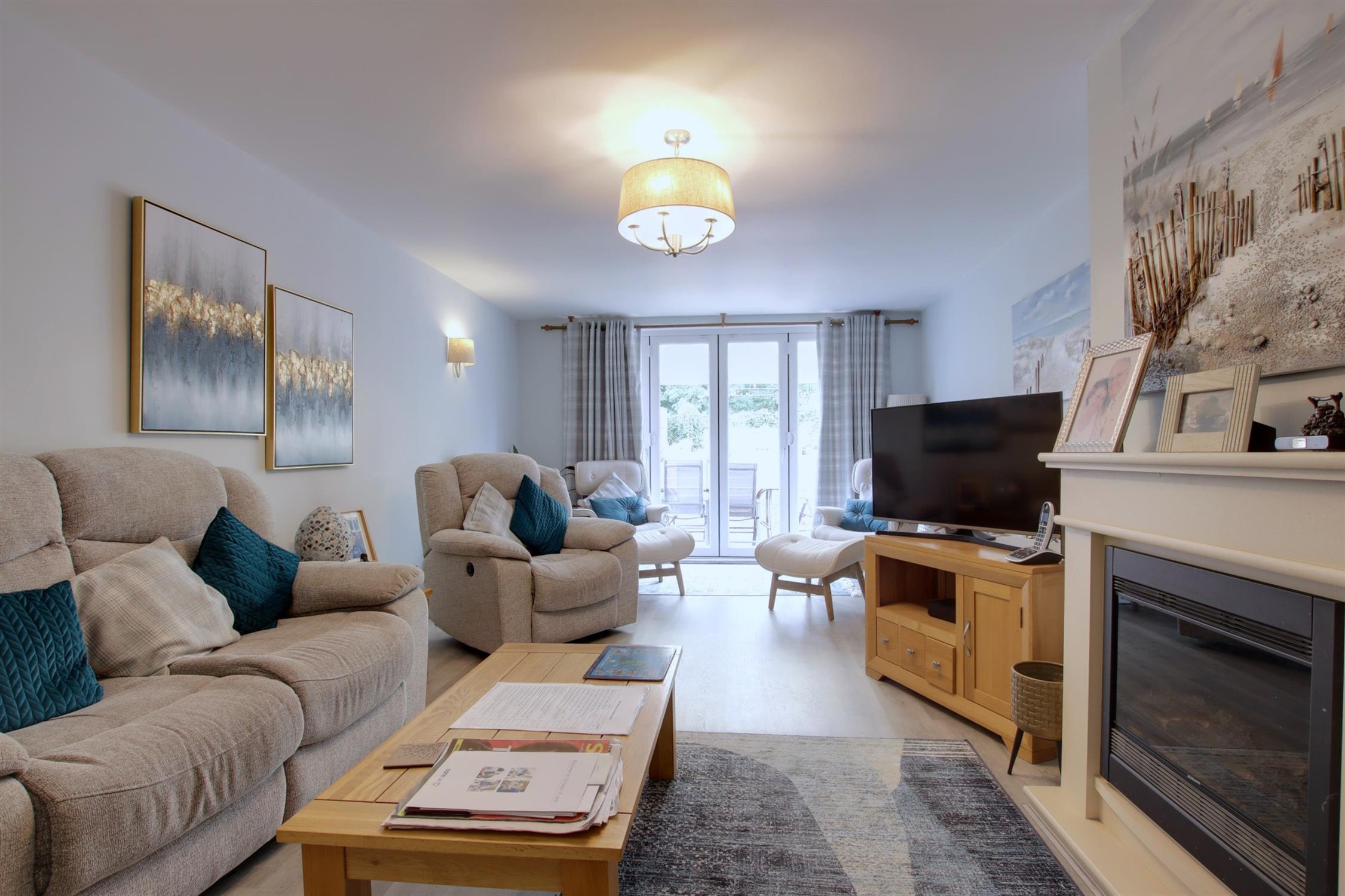 Double glazed bi-folding doors leading to the rear garden. Smooth ceiling. Two wall lights. Modern electric fireplace. Two radiators. Continuation of the flooring from the entrance hall.