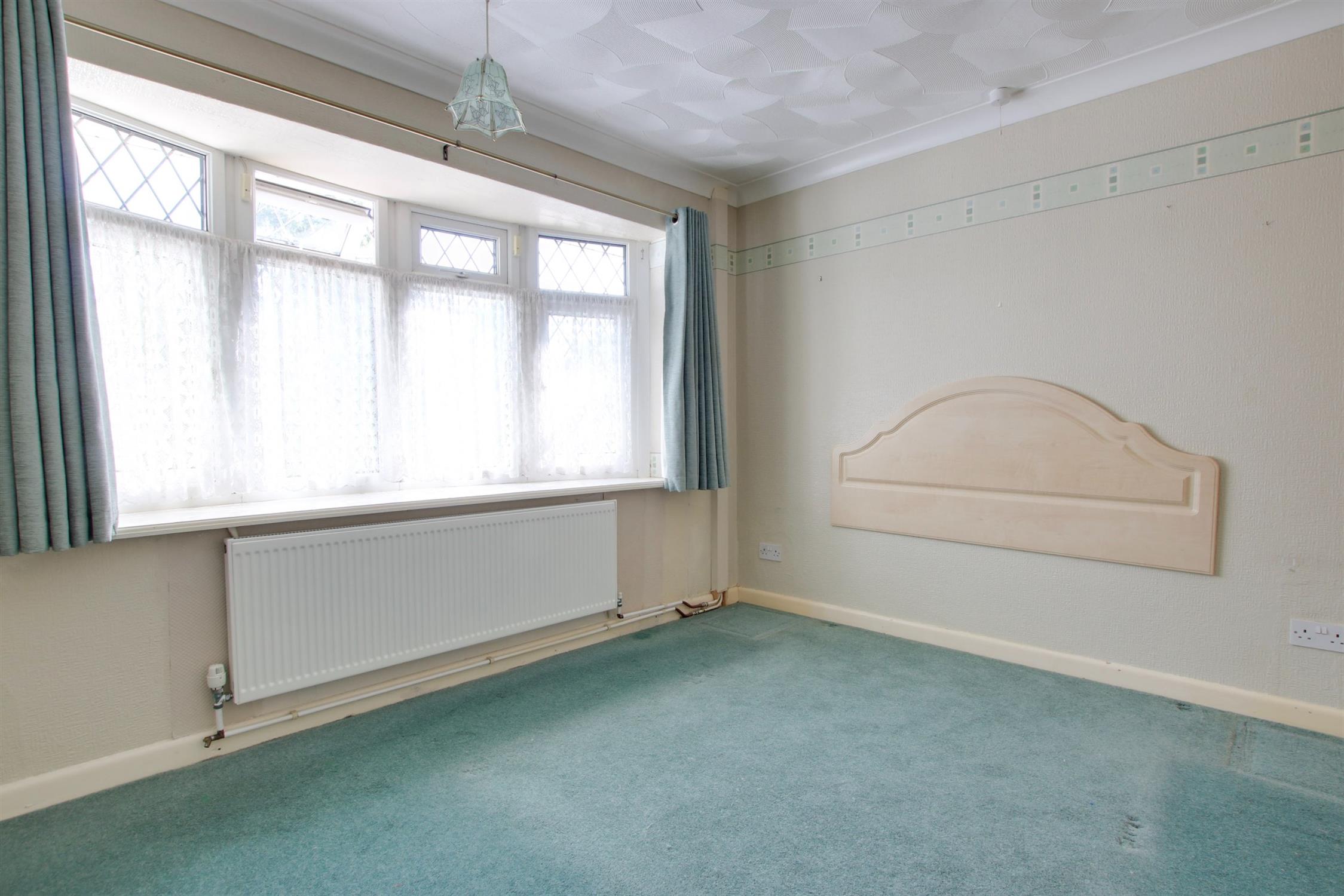 Double glazed bow window to front elevation. Two sets of built-in wardrobes and chests of drawers. Radiator. Coved and textured ceiling. Wall light.