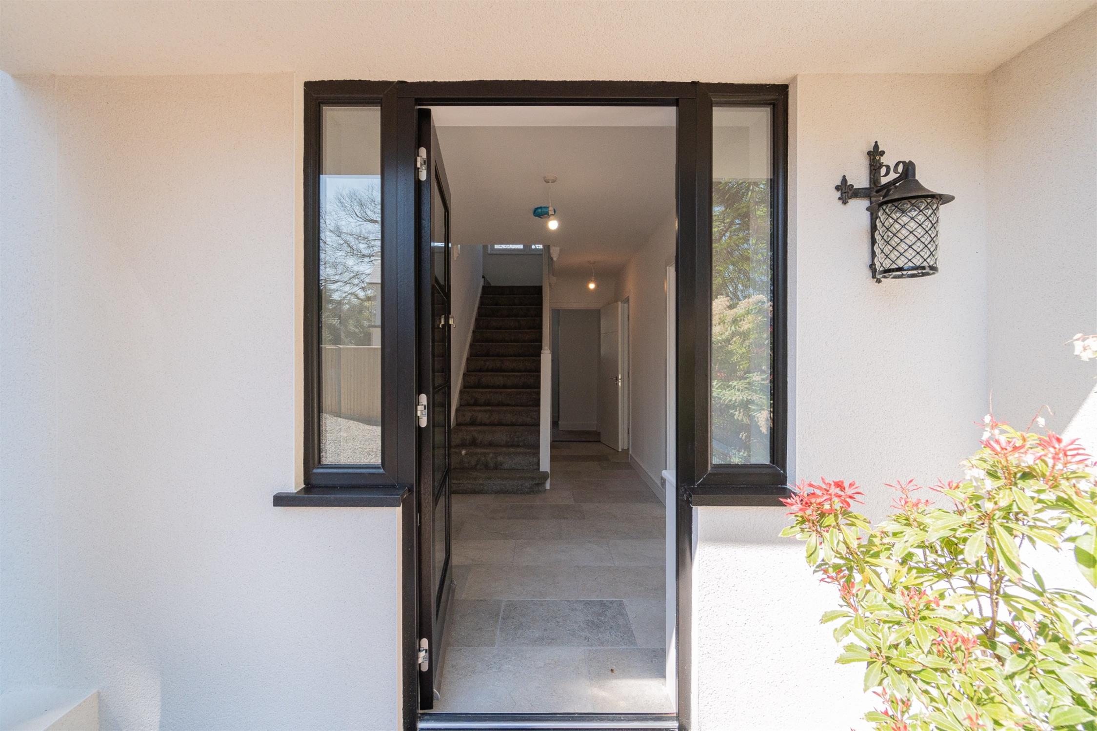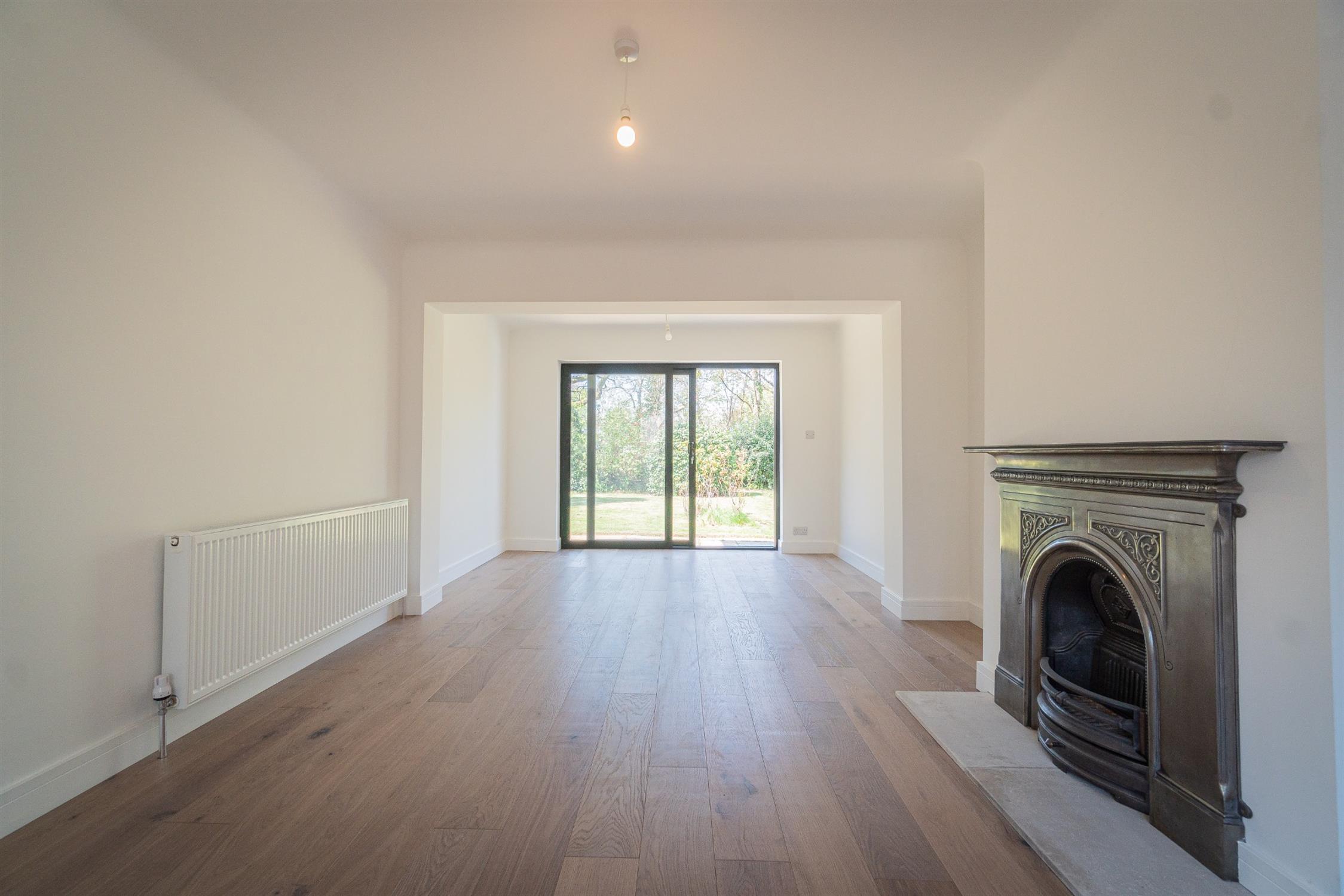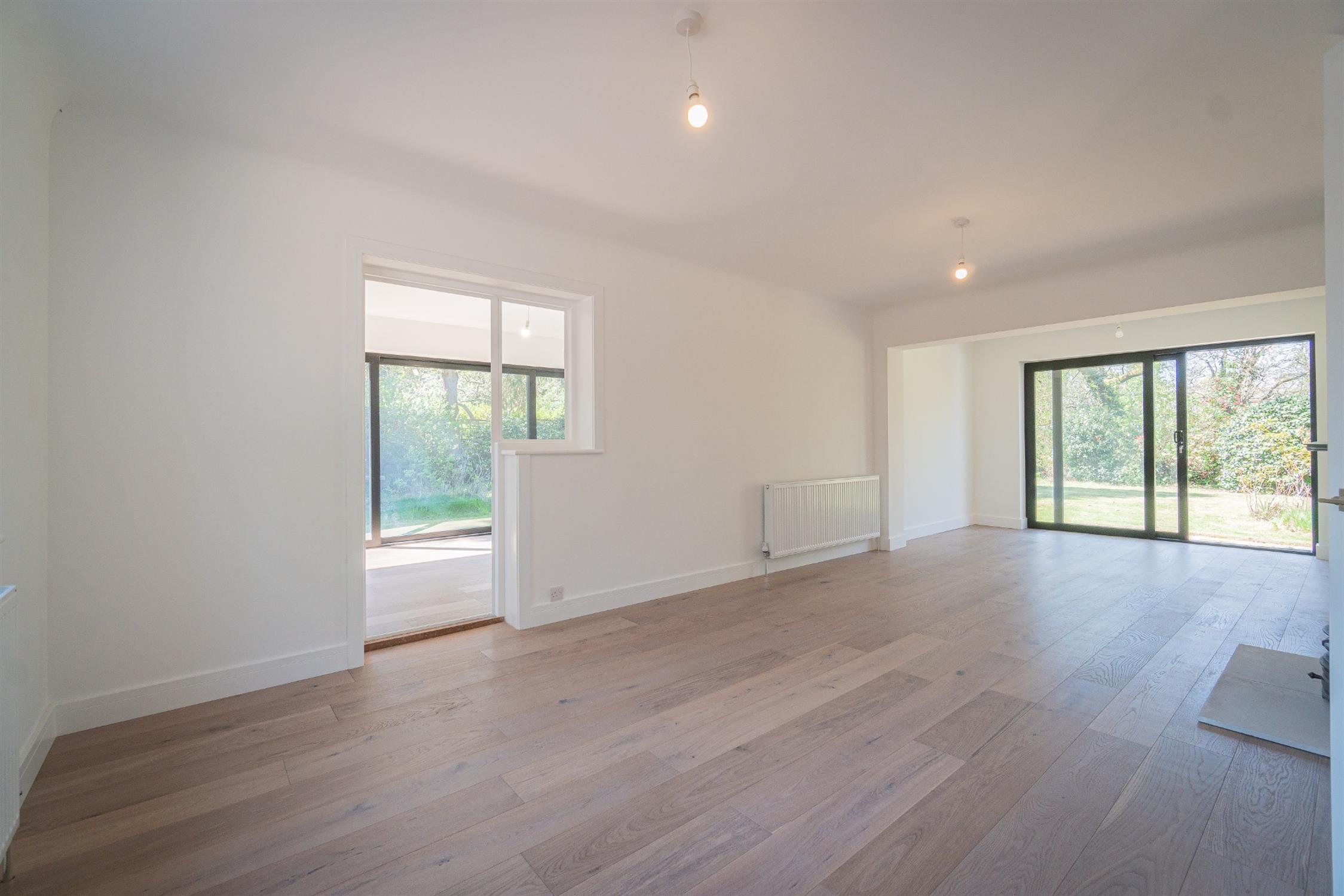 A glazed front door leads into a spacious entrance hall with stairs to the first floor and a downstairs shower room to the rear. The spacious dual aspect lounge leads into the garden room with sliding doors onto the side garden.