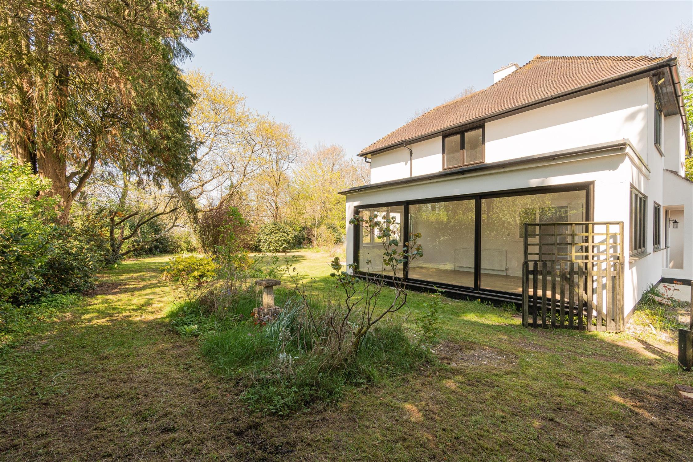 The mature, well established gardens wrap around the house with mature trees, shrubs and bushes. There is a paved patio to the rear of the property.