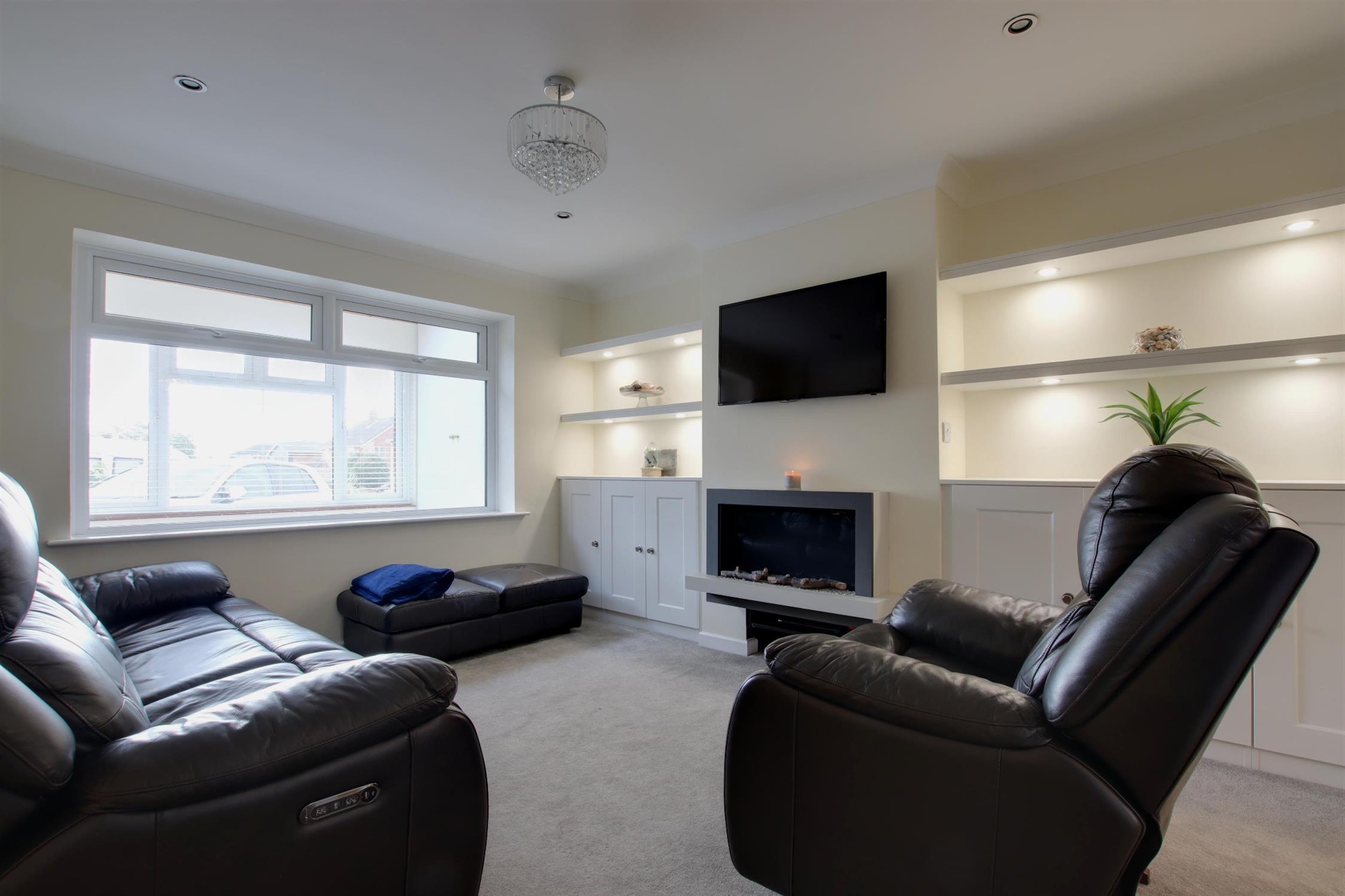 Double glazed window to the front aspect. Smooth and coved ceiling with inset spotlighting. Bespoke fitted cupboards and shelving either side of the chimney breast with recessed lighting. Understairs storage cupboard. Radiator.