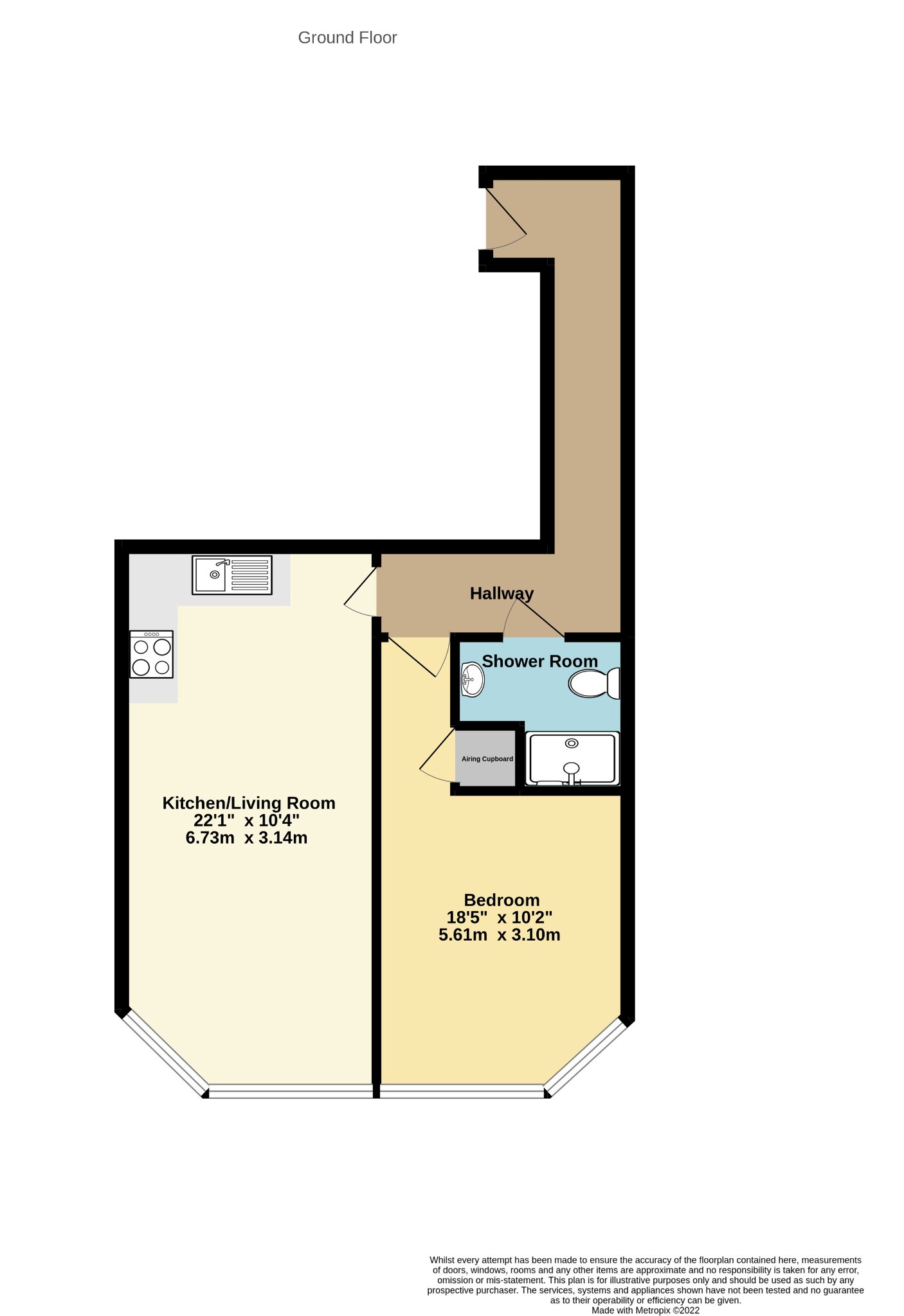 APARTMENT ENTRANCELaminate flooring with doors to the shower room and bedroom and at the end of the hallway is the kitchen/openplan lounge.