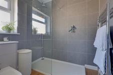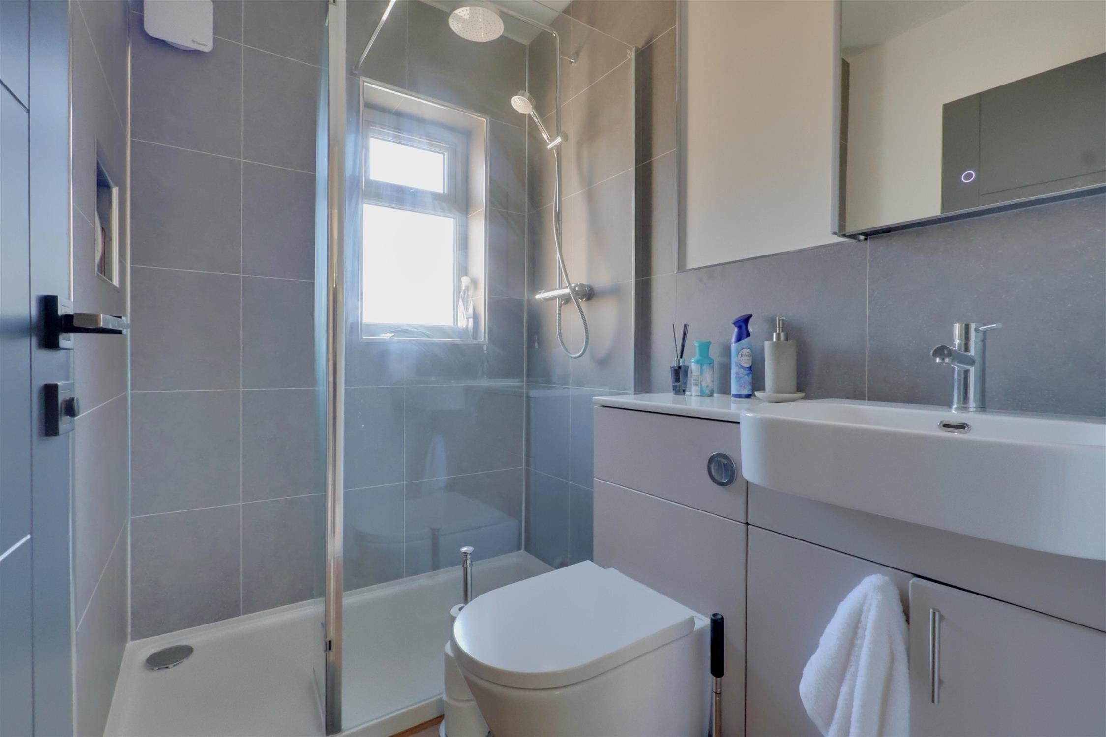 Obscure double glazed window, 3 piece suite comprising of: walk in shower, close coupled wc, vanity wash basin with mixer tap, part tiled walls, extractor fan.