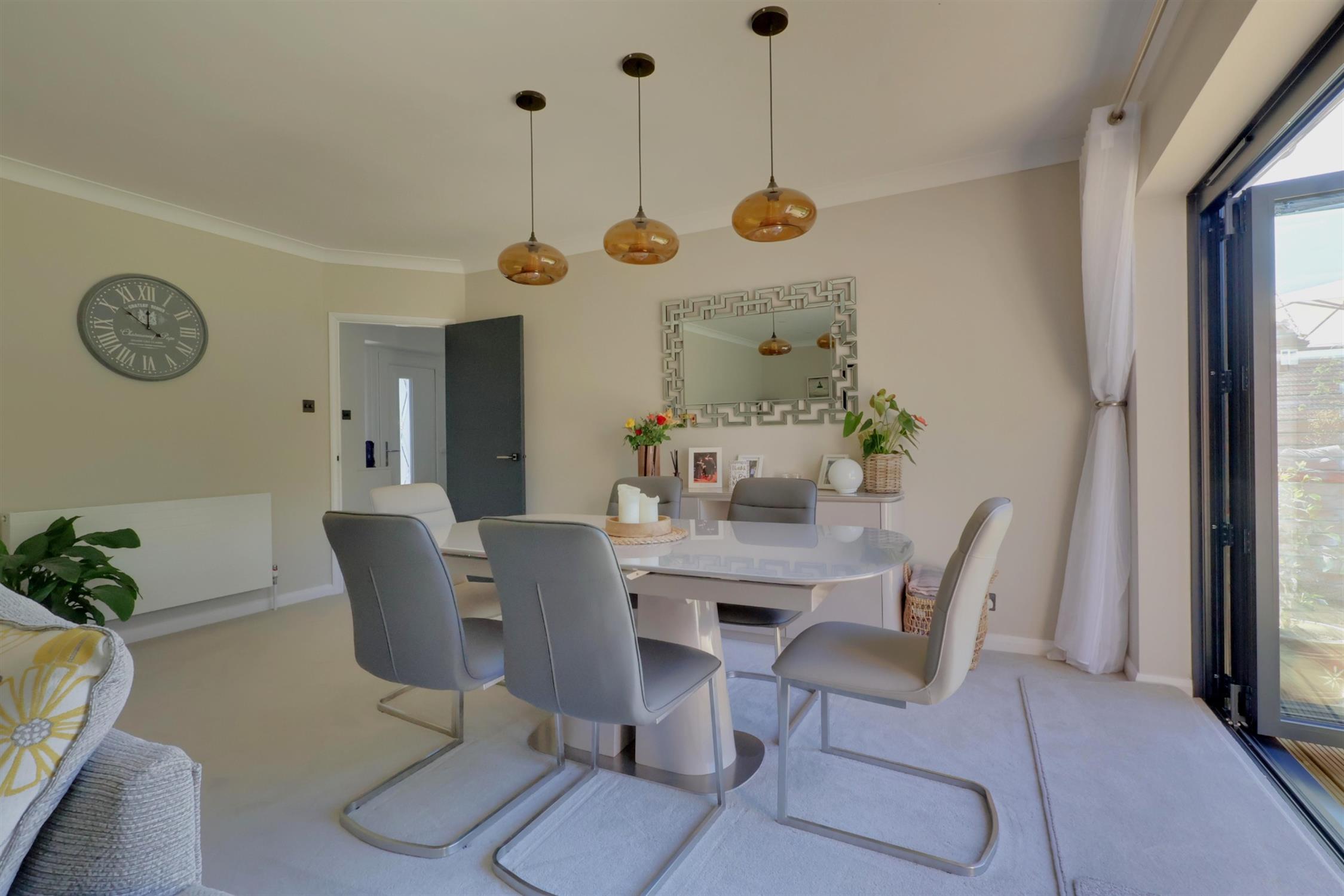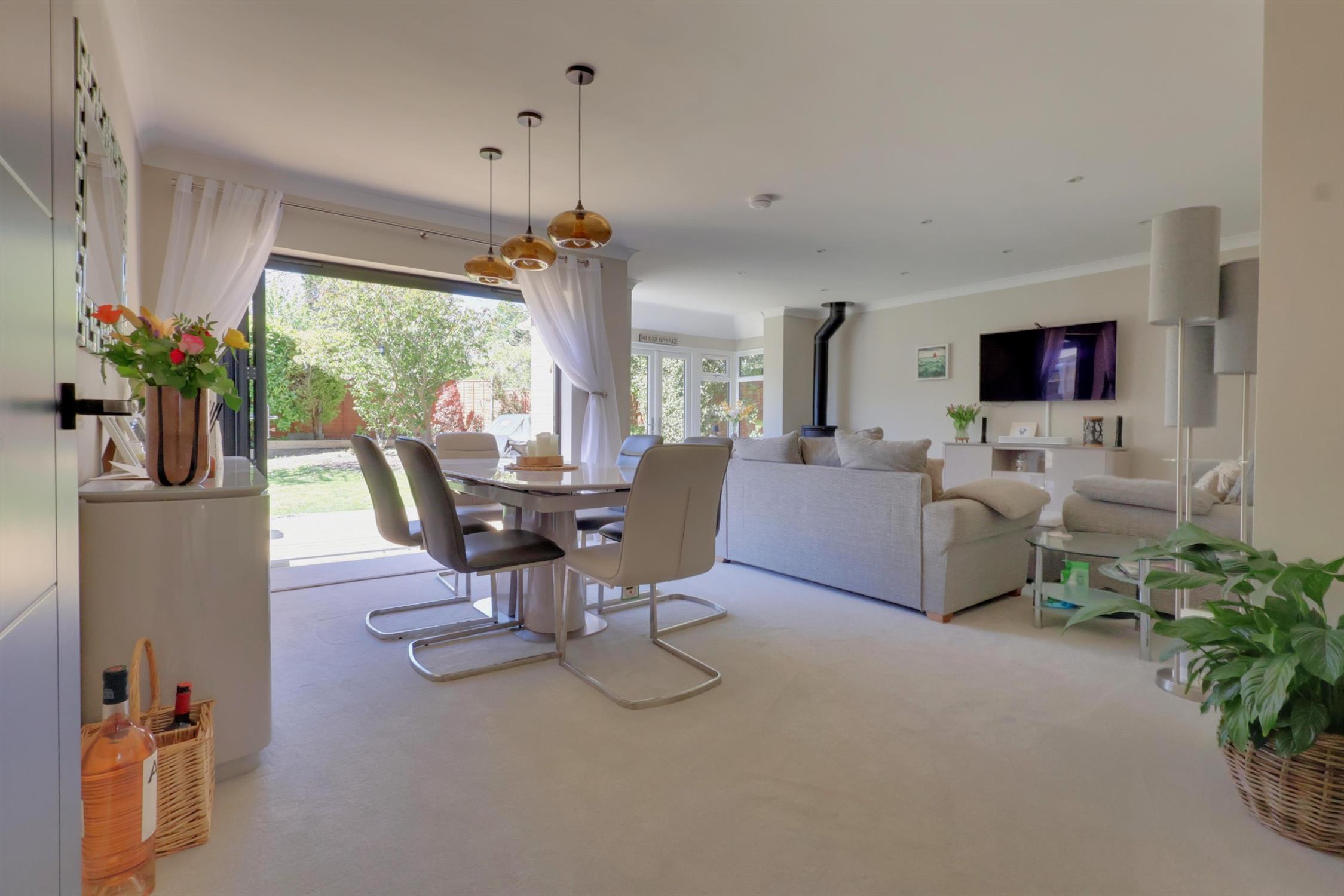 Open plan, lounge area has double glazed French doors onto the garden, log burner. Dining area has Bi-fold doors onto the garden, radiator.