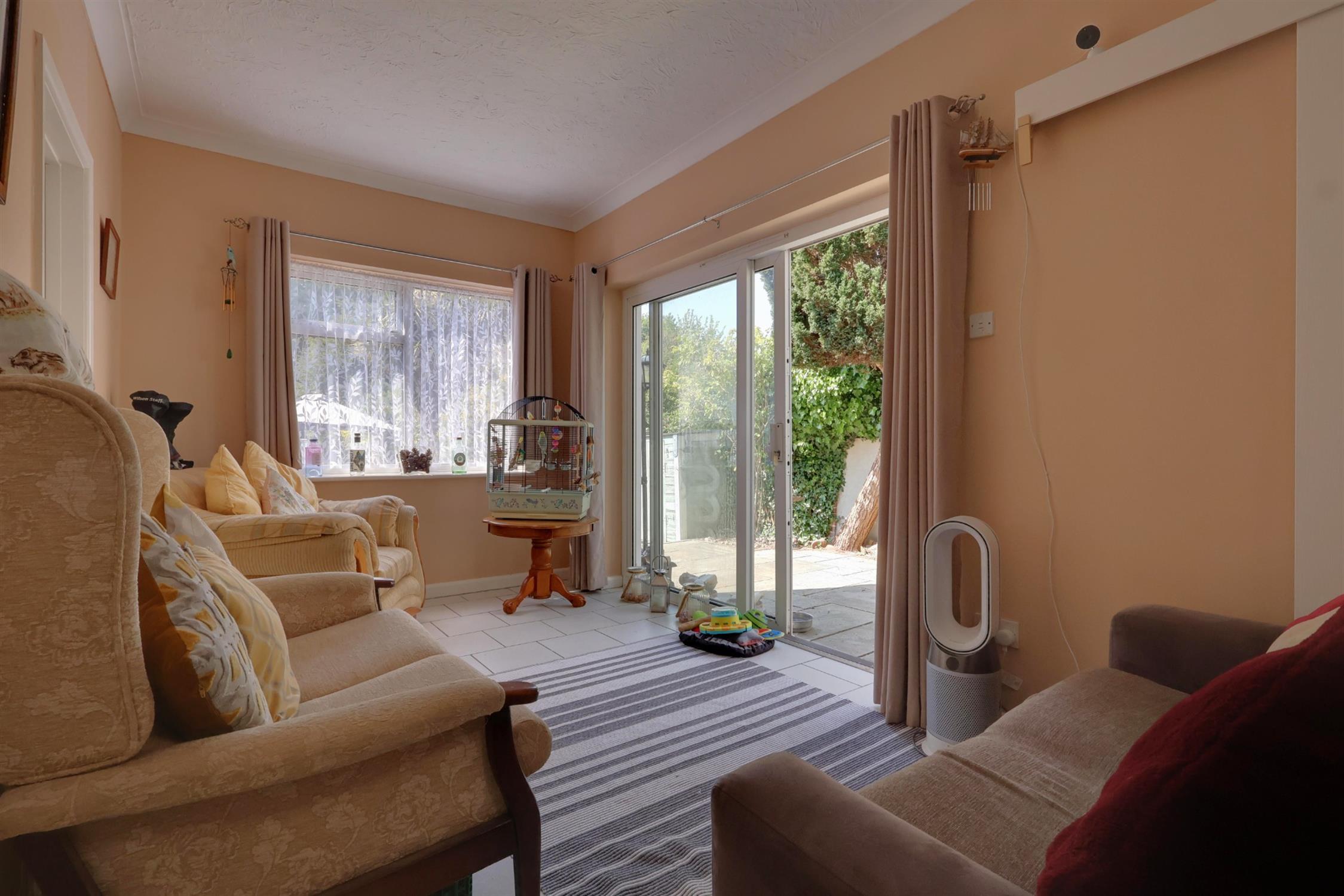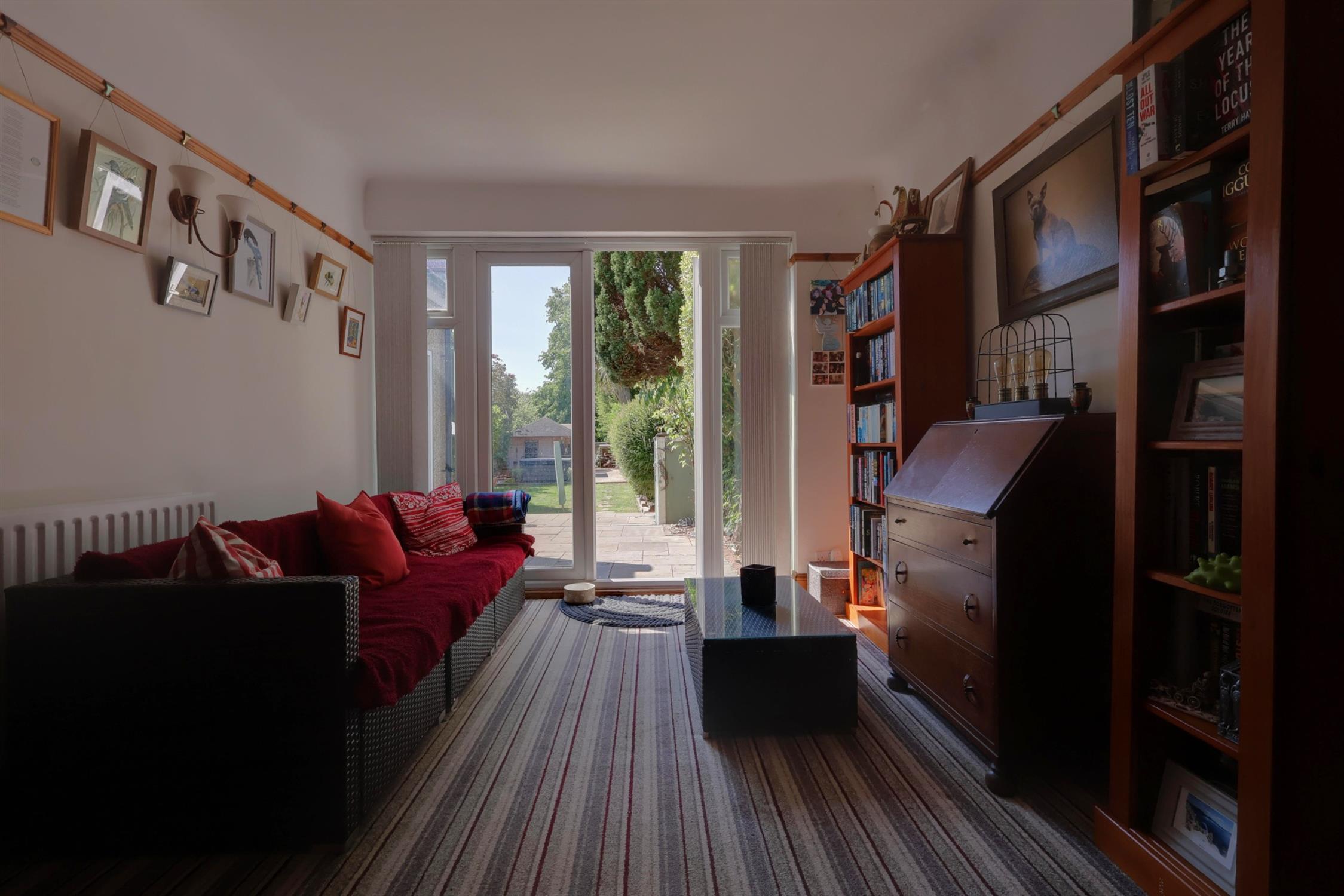 Pantry cupboard. Tiled flooring. Two radiators. Double glazed window. Sliding doors opening into the garden.