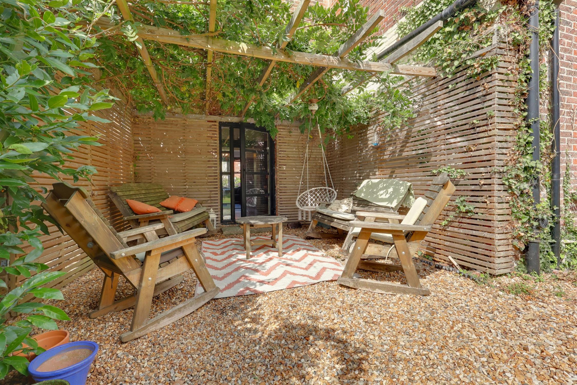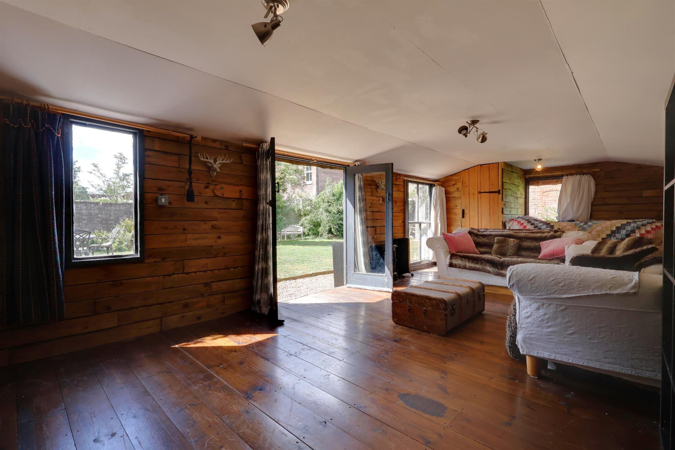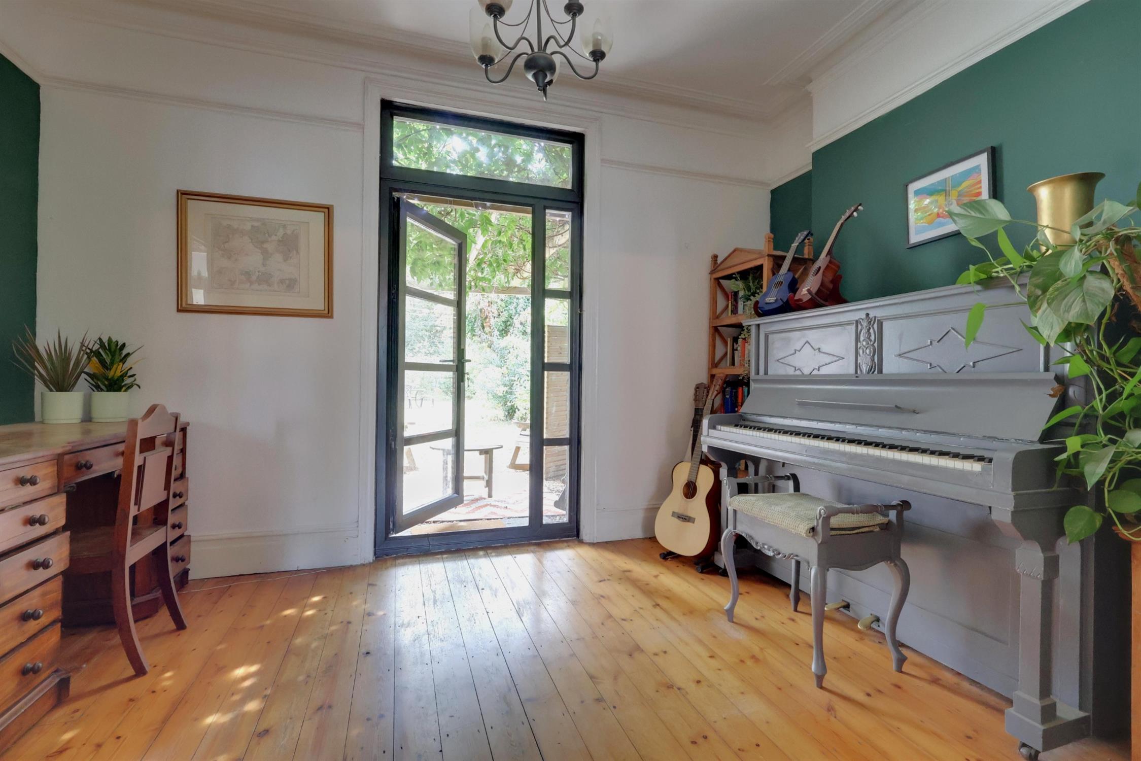 Wall radiator. Wooden flooring. Door to the rear garden.