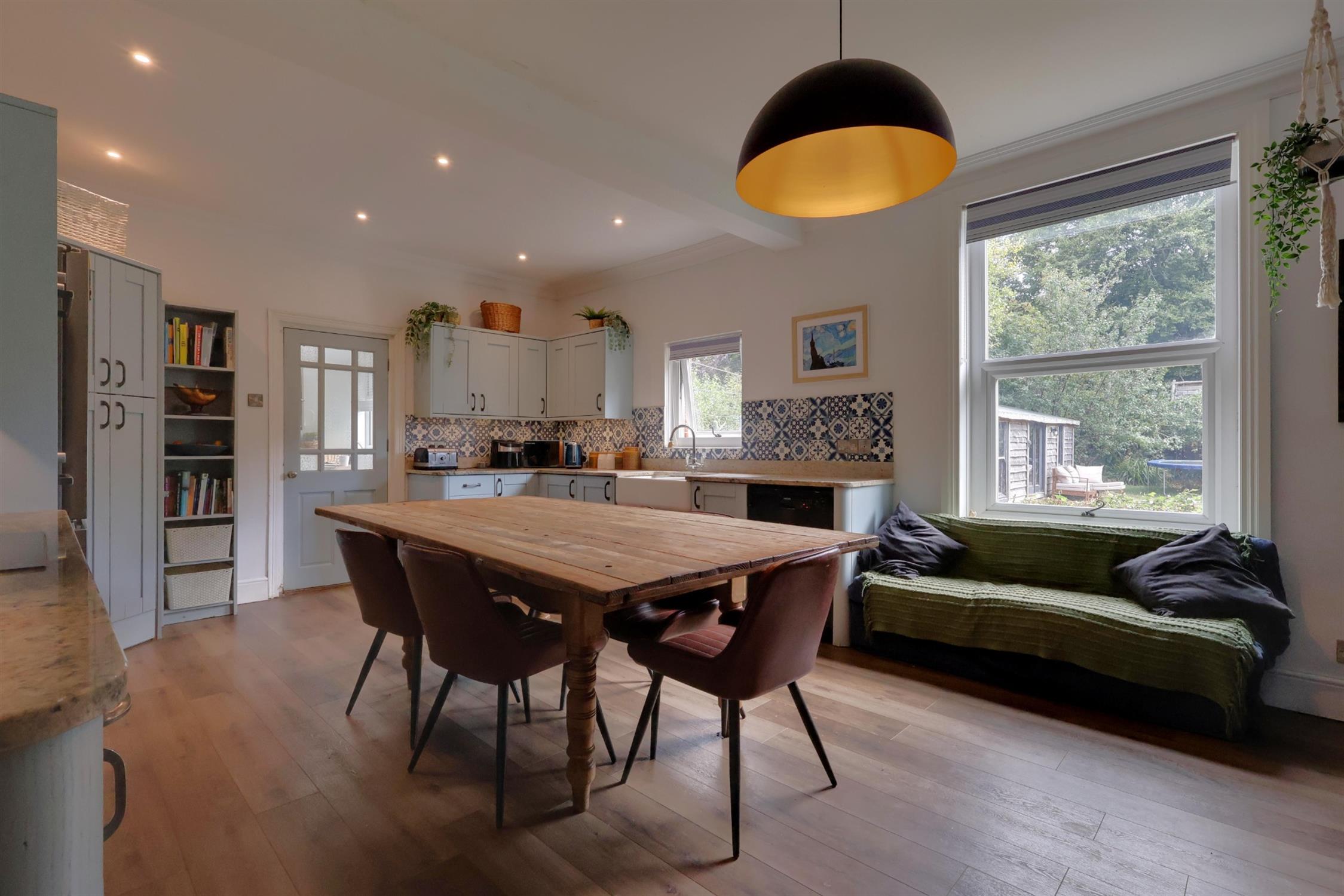 A tastefully decorated, detached family home of character and distinction. This period property has been improved by the current owners to perfectly blend stylish, contemporary design whilst retaining attractive original features. Situated on a plot of approximately a quarter of an acre, the property enjoys a substantial rear garden which is mostly laid lawn and provides a large summer house, fitted with power and lighting. A spacious and welcoming entrance hall features an elegant staircase and cloakroom. The sitting room and dining rooms both provide attractive bay windows which draw in plenty of natural light.