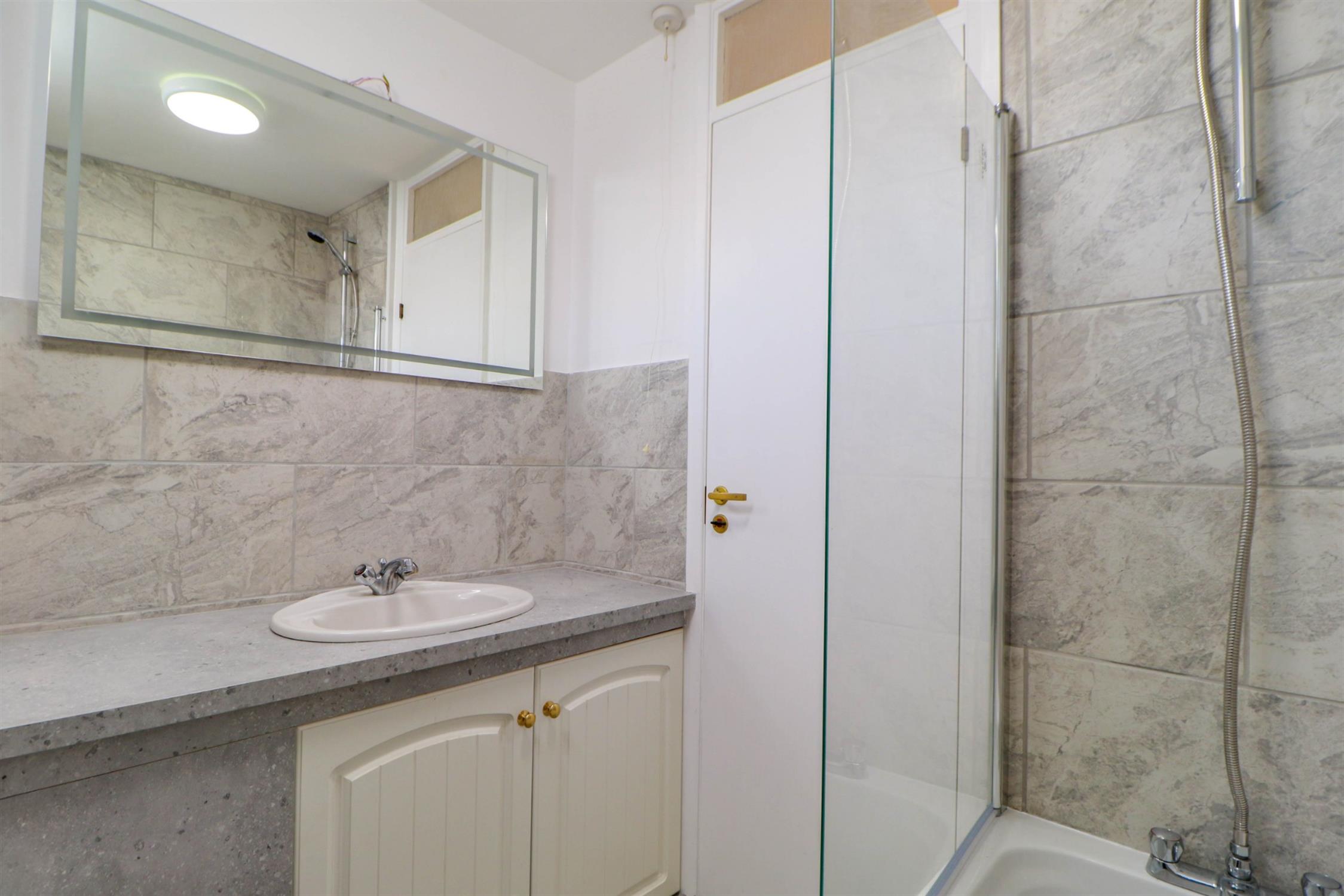 Smooth ceiling, double glazed obscured window, panelled bath with mixer shower over and screen, WC, wash hand basin set in vanity unit, LED lit wall mirror, part tiled walls, vinyl flooring.