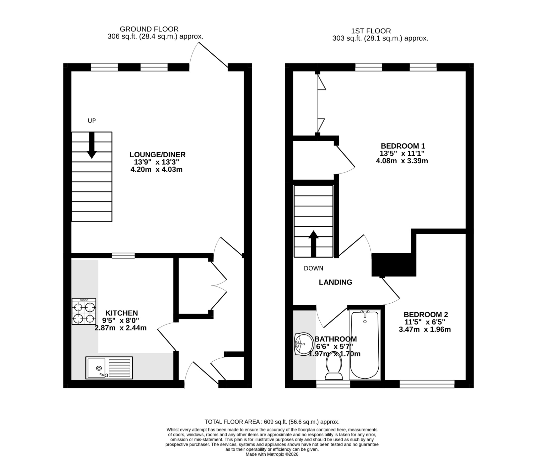 Upstairs, the property offers a generous double bedroom complete with fitted wardrobes, a well-proportioned single bedroom, and a modern bathroom finished to a contemporary standard. Externally, the rear garden provides a pleasant private outdoor space, while the property further benefits from a separate garage, allocated resident parking, and additional visitor parking within the estate. Beehive Walk is conveniently located for local amenities and transport links, making this an ideal purchase for first-time buyers, professionals, or those looking to downsize.