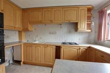 Double glazed window overlooking the rear garden. Matching wall and base units with contrasting worktops. Tiled splashback. Four ring gas hob. Integrated oven, grill and microwave. Inset sink and drainer. Space and plumbing for washing machine.