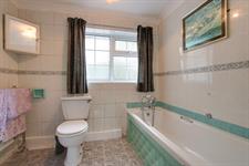 Double glazed window to rear elevation. Panel enclosed bath. Low level close coupled WC. Pedestal wash hand basin. Tiled walls. Coved and textured ceiling.
