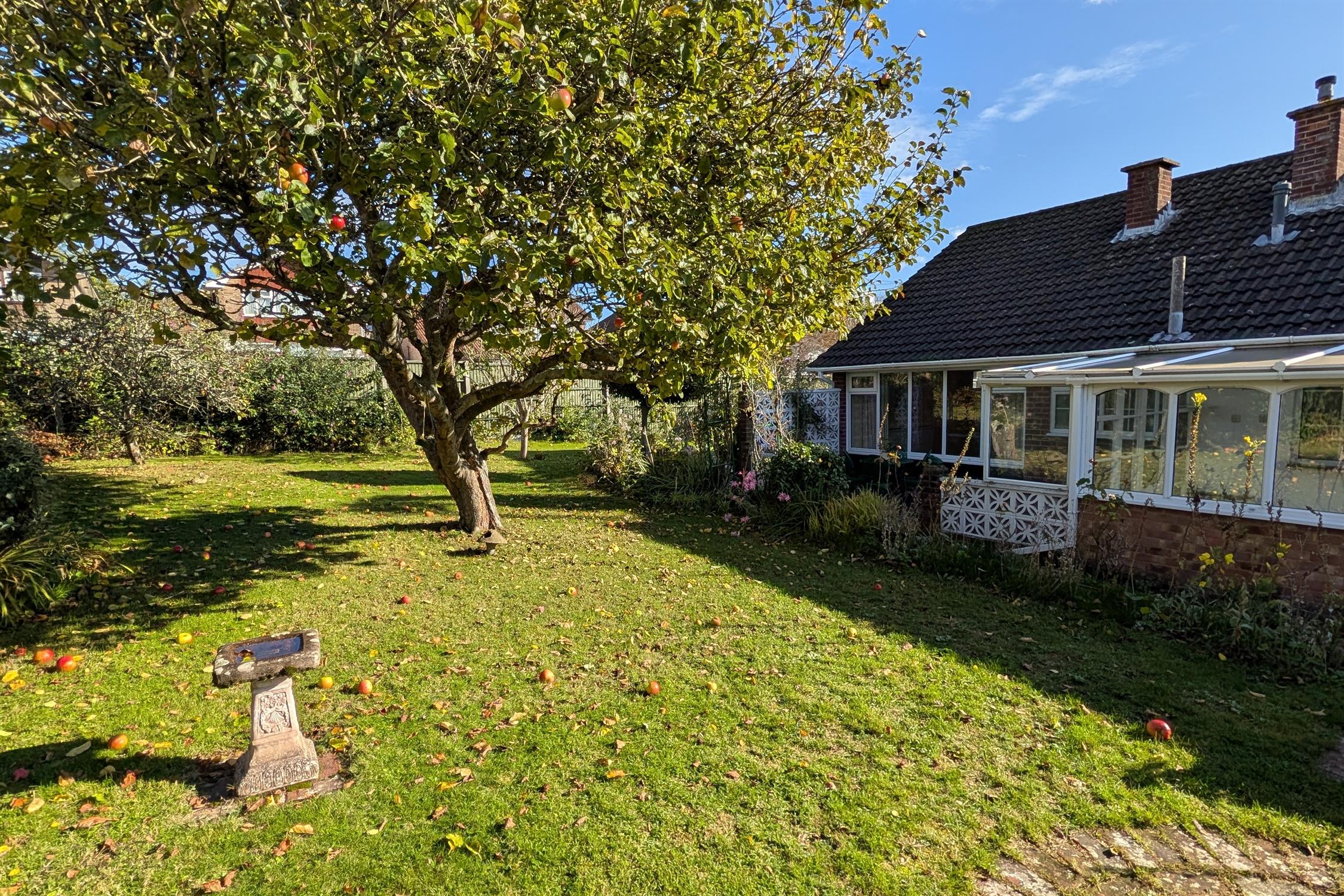 The bungalow sits on a corner plot and has a larger than average garden extending along two sides of the bungalow and can be found laid to lawn with a patio area adjacent to the bungalow. There are numerous fruit trees, well-stocked flower and shrub borders, a garden shed and a garden pond. There is a further paved garden area adjacent to the utility room which makes an ideal area for drying clothes.