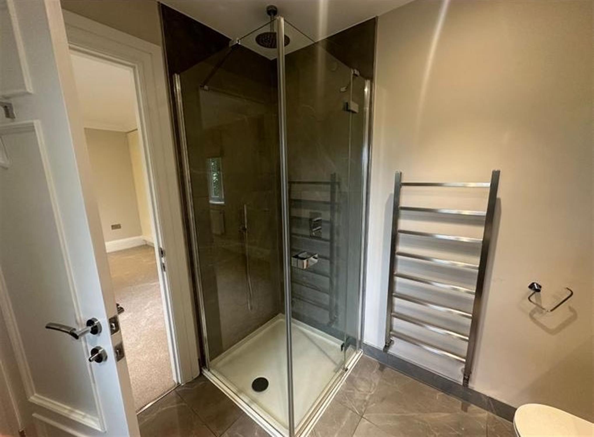 En- Suite Bathroom - Smooth ceiling, partially tiled walls, window to rear aspect. Suite comprising; a double shower cubicle, recessed bathtub, low-level W.C & wash hand basin.