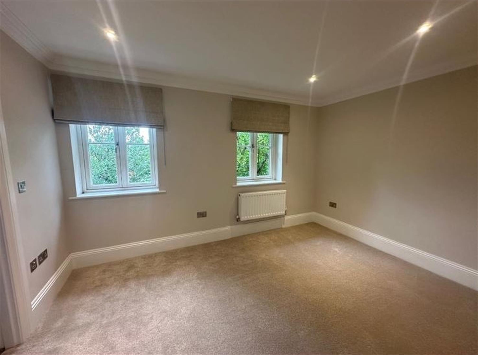 A two-bed house comprising of a fitted Charles Yorke kitchen with Bosch & Miele appliances, open plan living/dining room, study & W.C. Two double bedrooms with en-suite facilities and built-in wardrobes to the first floor. Outside is a driveway and parking with front & rear gardens. EPC: B and Council Tax Band: F
