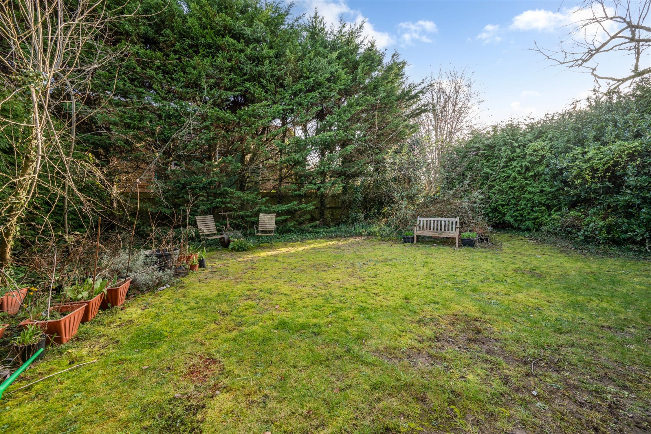 The plot is excellent and one of the larger plots in Bereweeke Way. There are a significant amount of deep bushes and ornamental trees that, once cut back, could allow even more space. Please note that the wall to the side of the property is leaning, with stress cracking and will likely require replacement.