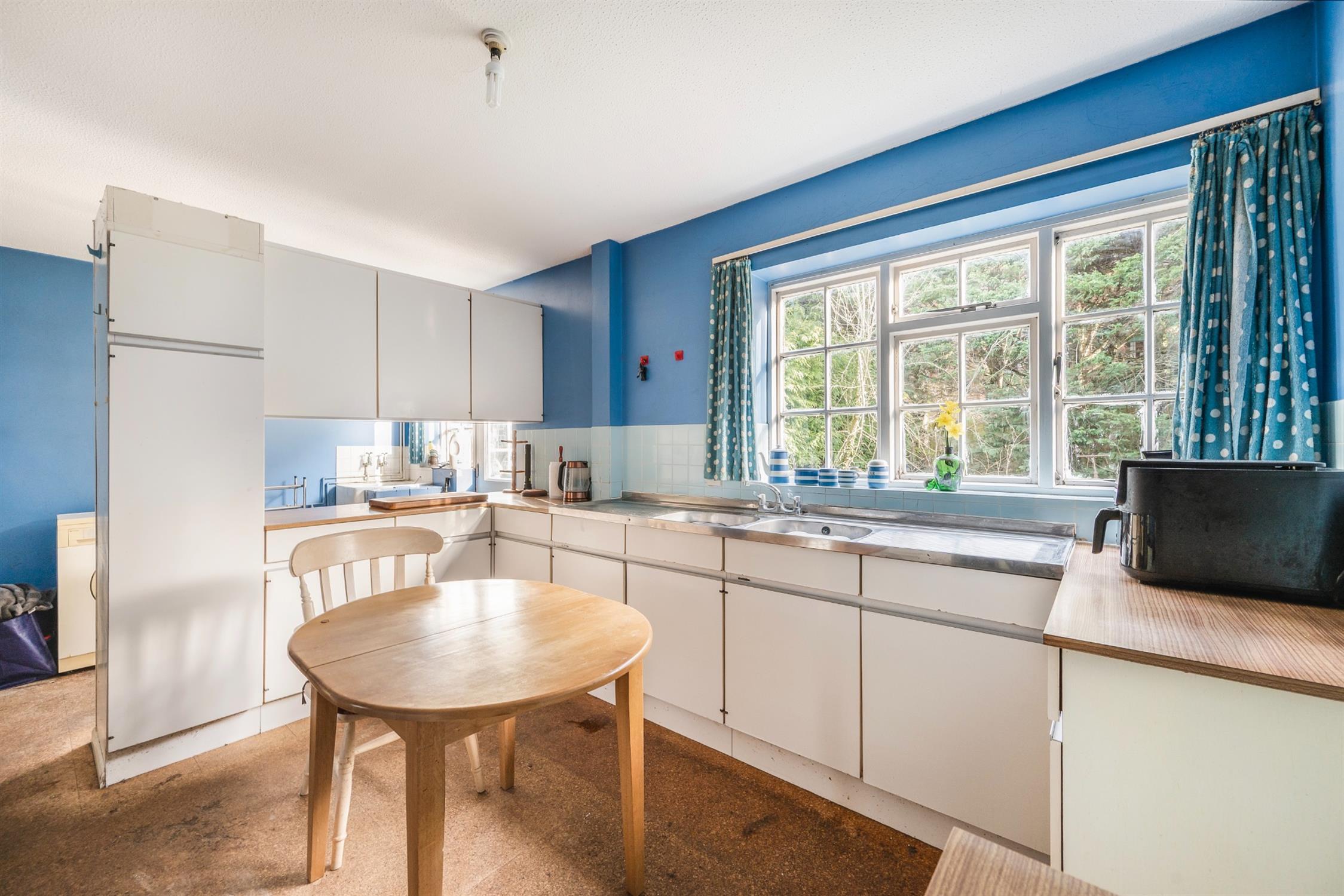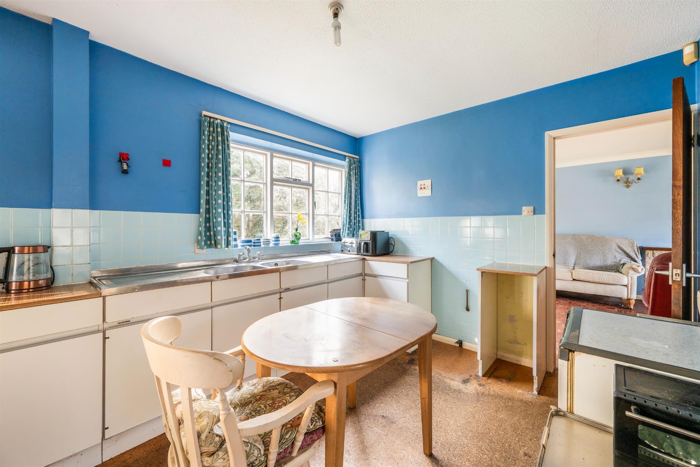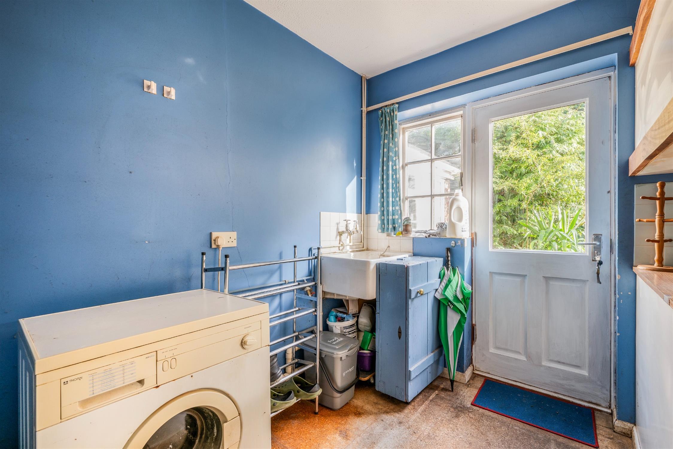 Gas point (currently capped) for oven. A section of the room has been fitted as a utility room with butler sink and piping for utilities. Door to the rear garden.