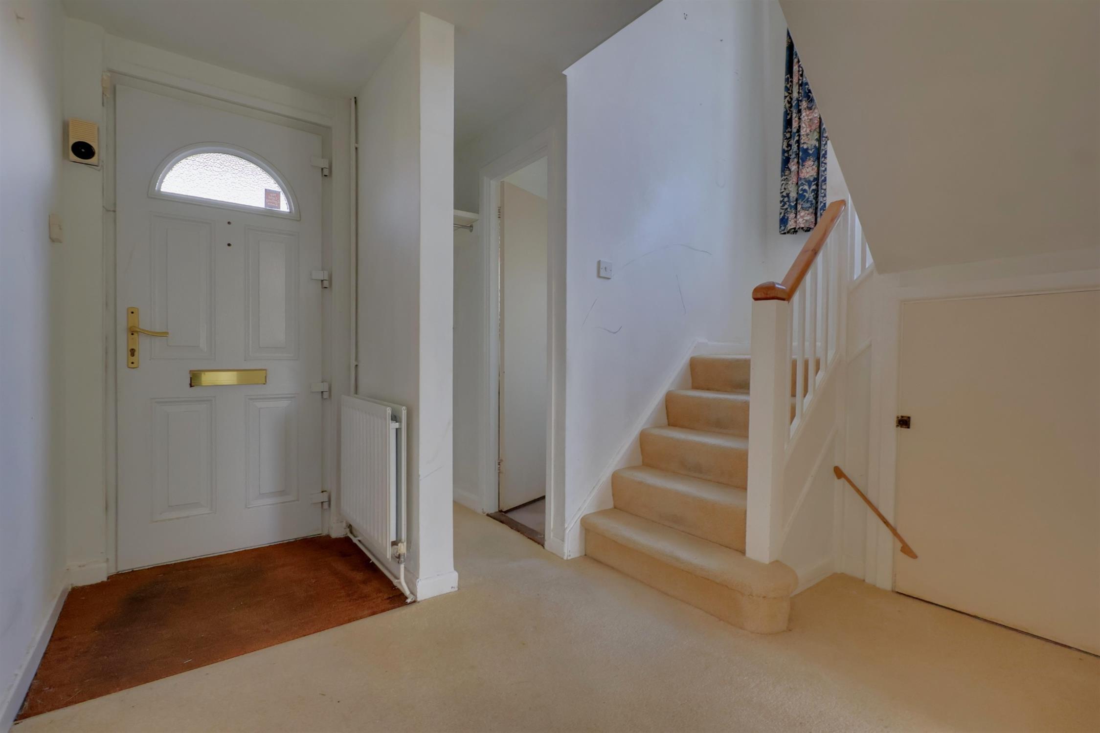 Via the front door leading into the hallway, which has doors to the ground floor rooms, stairs rising to the first-floor accommodation, a radiator, and an understairs cupboard.