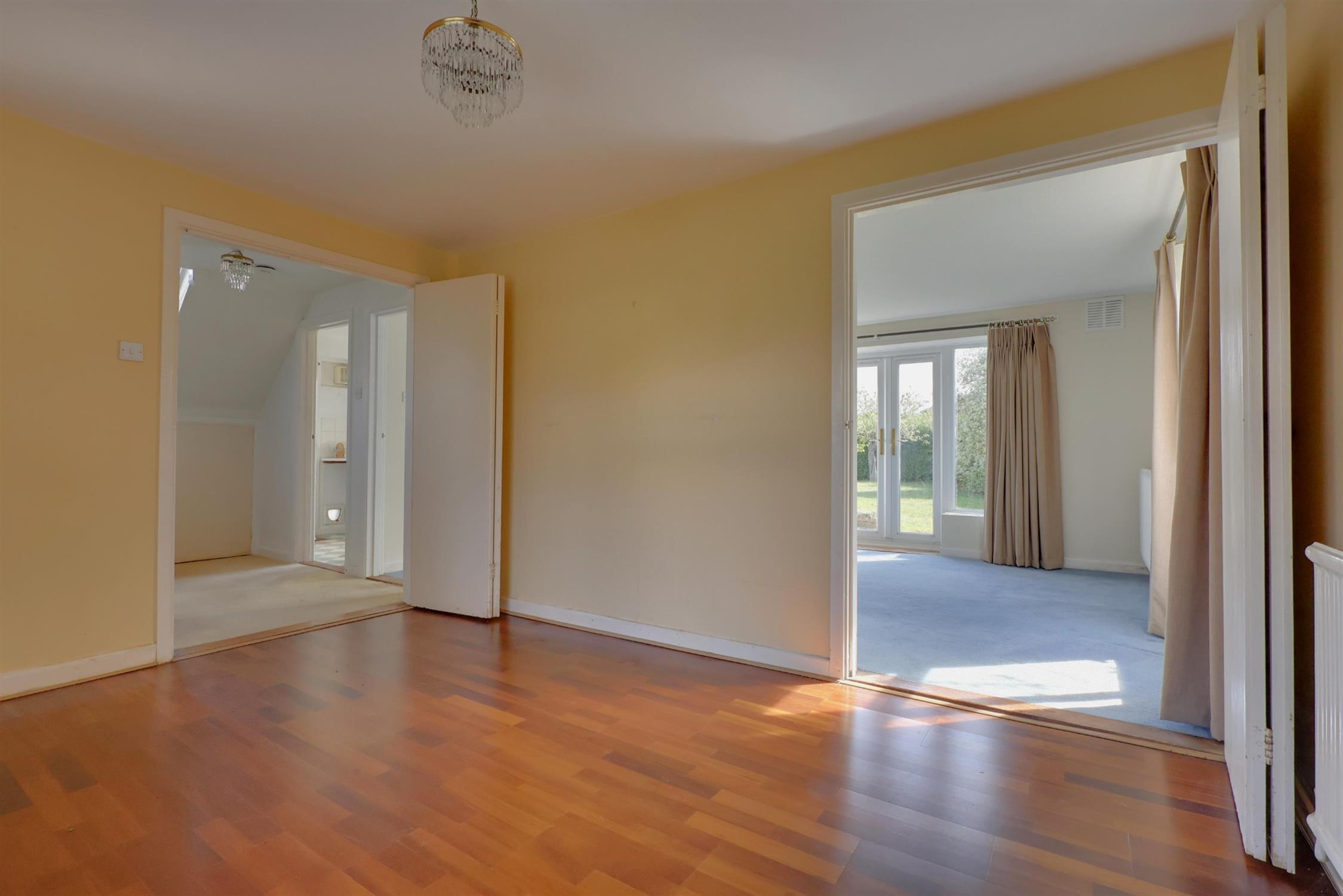 This attractive detached house occupies a generous garden plot, with spacious front and rear gardens that offer excellent width and length. The accommodation includes two reception rooms, a fitted kitchen, three bedrooms, and the added benefit of a garage and a shed/workshop. The sitting room is a particular feature, with patio doors opening directly onto the extensive rear garden, providing an ideal setting for outdoor living. The property presents an exciting opportunity for modernisation and extension, subject to planning consents, allowing buyers to create a wonderful family home tailored to their needs.