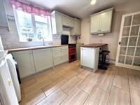 Space and plumbing for a washing machine and space for a fridge/freezer. Gas oven. Double-glazed window to the side aspect. Wood-effect laminate flooring. Cupboard housing the combination boiler. Smooth ceiling with inset spotlights. Radiator.