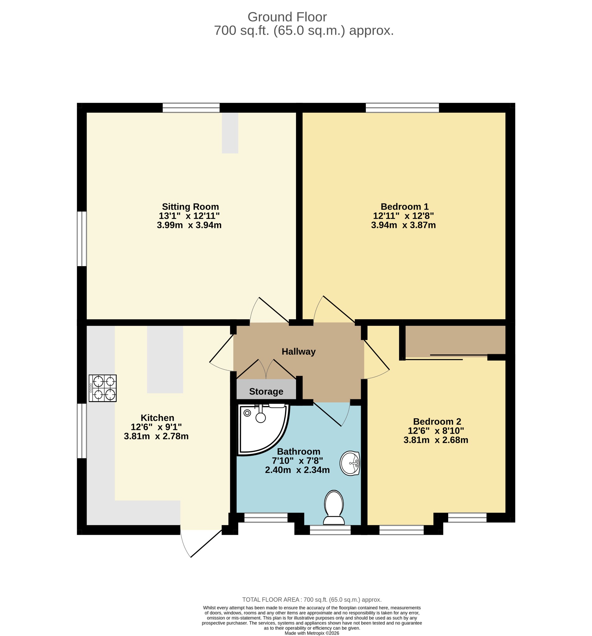 Wood-effect laminate flooring. Radiator. Two double-glazed windows to the front aspect. Built-in wardrobe with sliding doors.