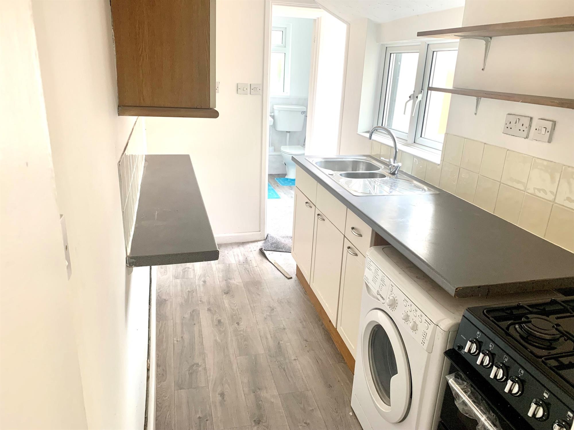 KITCHEN: Galley kitchen with window to side. Appliances: freestanding oven and washing machine. Owner will supply fridge/freezer upon request.