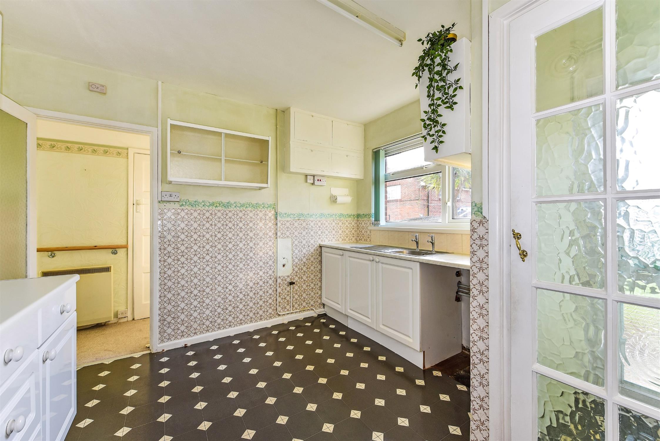 Fitted with white base cupboard, drawer and wall units. Single drainer, stainless stainless steel sink unit. Appliance space for cooker, fridge and washing machine. Double glazed window to the side elevation. Door to the utility/boot room. Door to the PANTRY, with fitted shelving and double glazed window to the rear aspect.