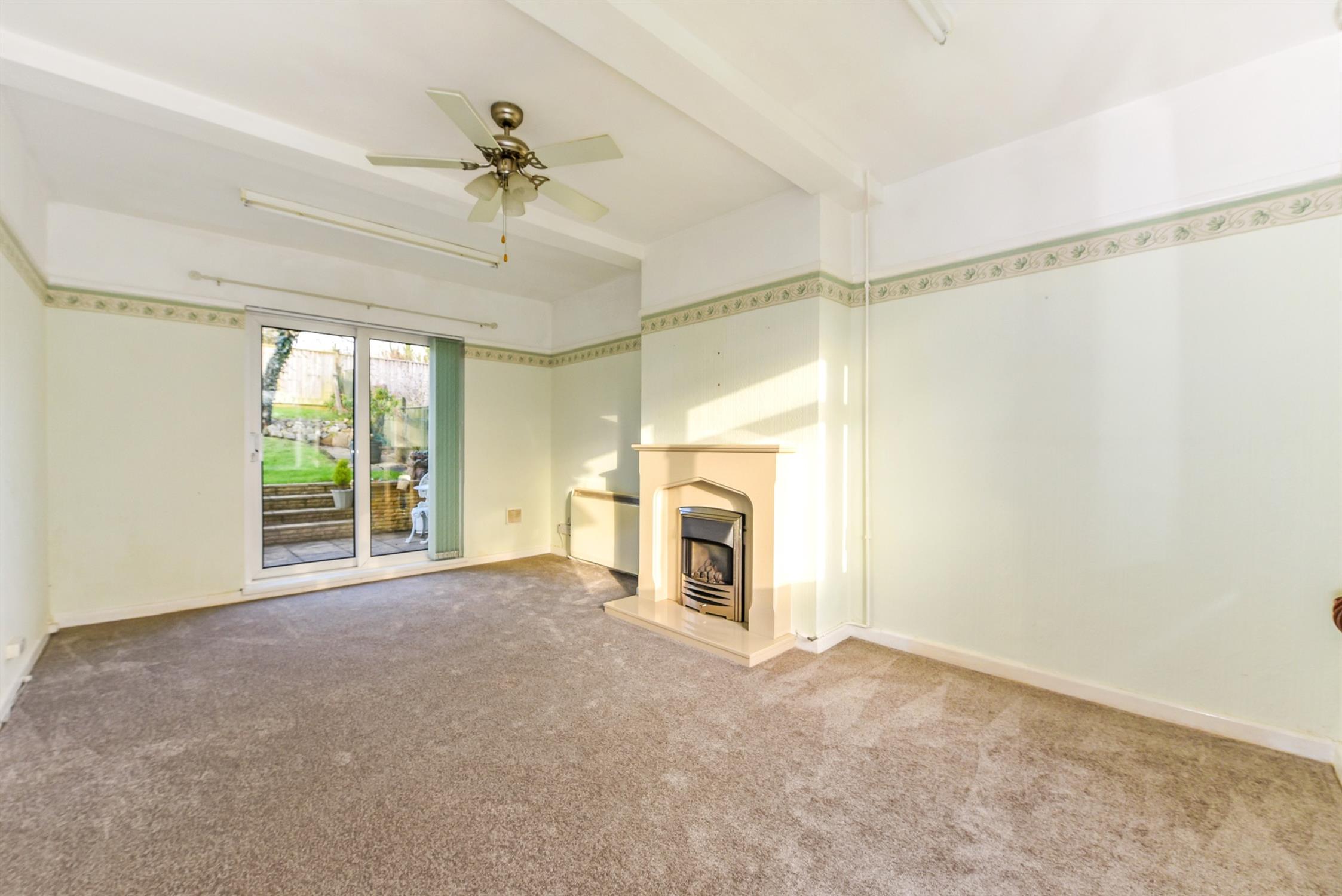 Lovely light double aspect room with a double glazed window overlooking the front garden and double glazed patio doors overlooking and leading onto the rear garden. Fireplace surround with fitted gas fire. Dimplex electric heater.