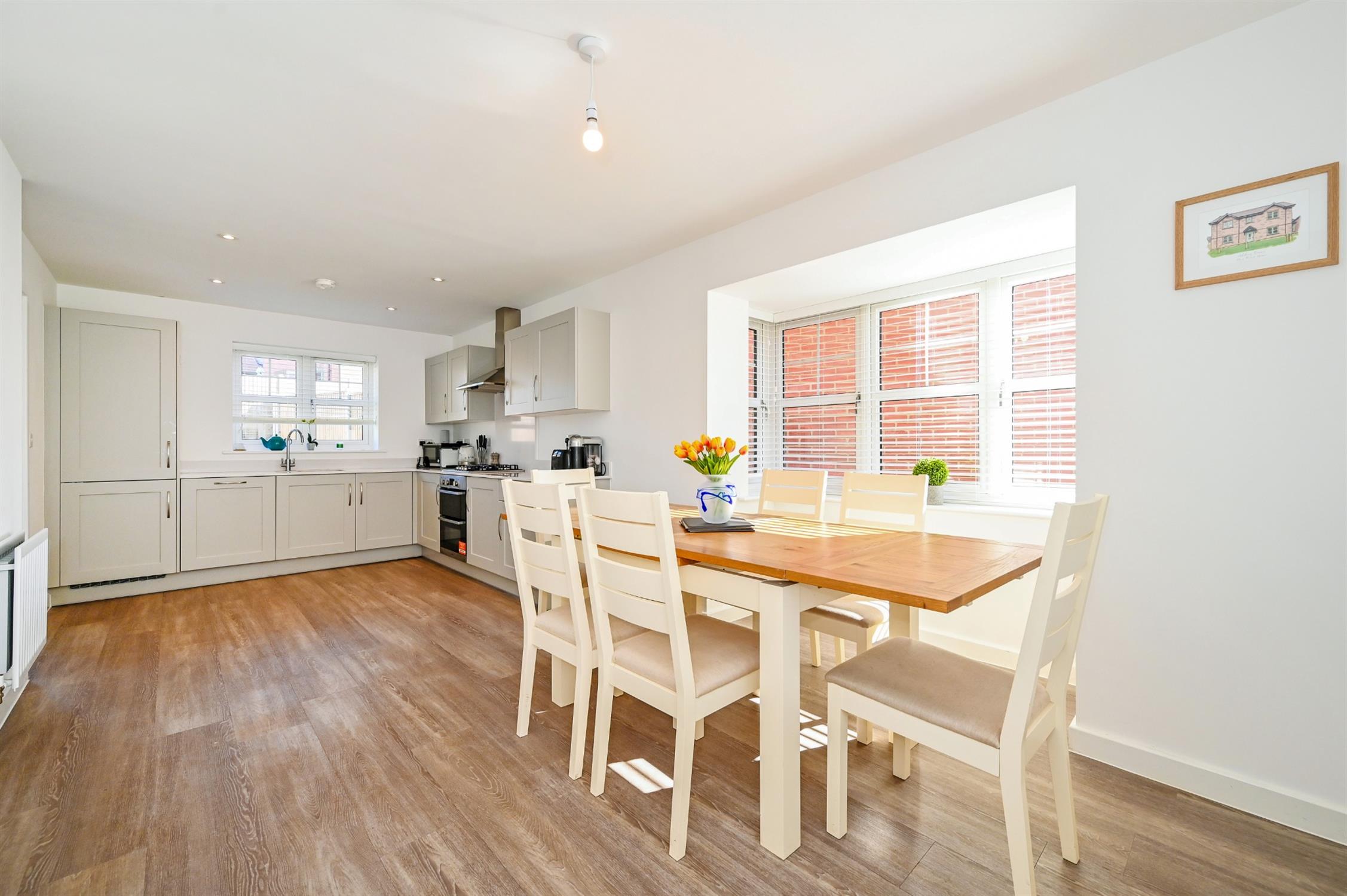 Spacious triple aspect room with double glazed windows to the front, side and rear aspects. The kitchen is fitted with a stylish range of wall, drawer and base units with complimentary worktops and tiling. Integrated fridge/freezer and dishwasher. Fitted gas hob with extractor over. Electric oven and grill. One and a half bowl sink with mixer tap over. Spacious dining area for table and chairs. Inset lighting. Two Radiators.