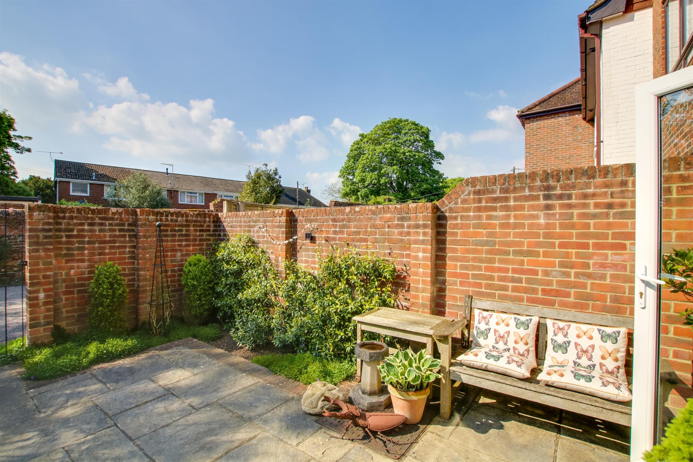 There is a private parking area to the rear, for the house and neighbouring residents where there is a GARAGE and PARKING SPACE. To the front of the property, paved forecourt and raised border. There is a pretty walled courtyard garden to the rear of the house, which offers a perfect low maintaince space for enjoying. Rear pedestrian gate leading to the parking.