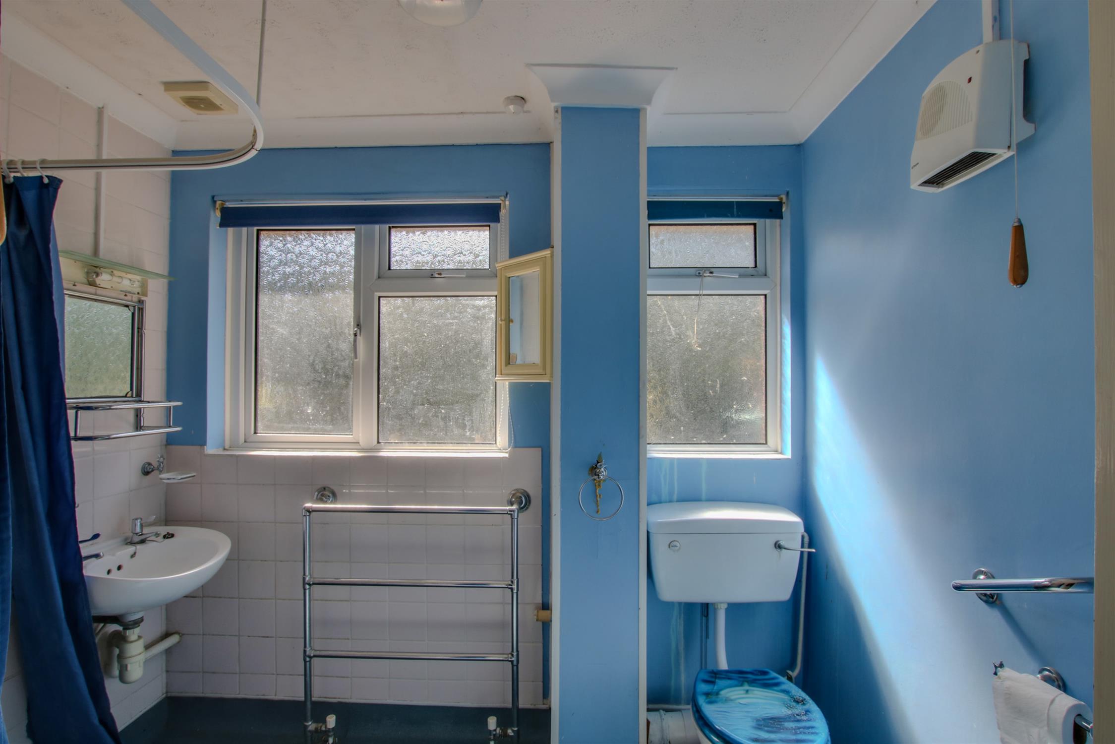 Two windows to the rear aspect. Low level WC. Wash hand basin. Shower. Heated towel rail.