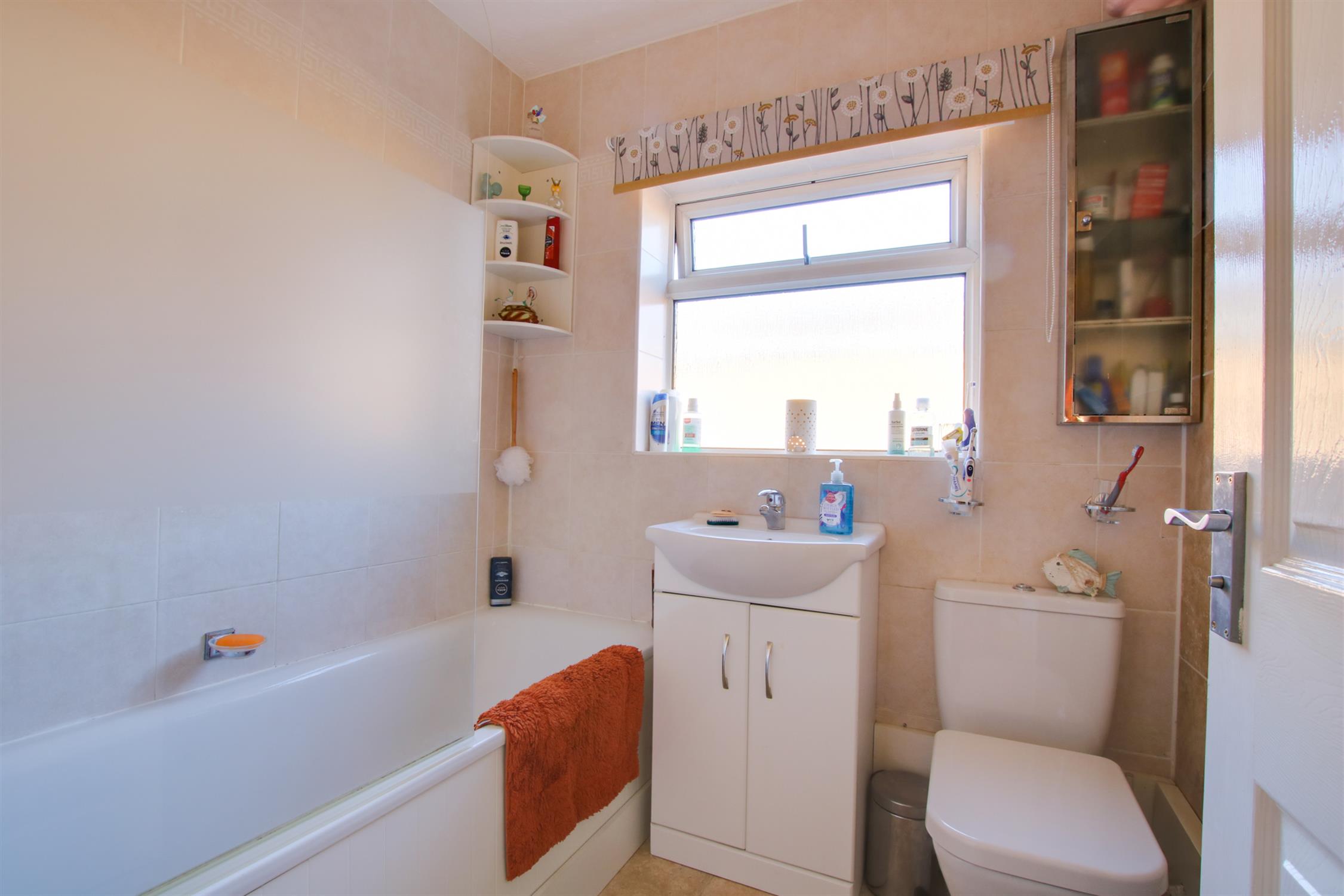 Panelled bath with Triton shower over with tiled surrounds. Vanity unit with wash hand basin. Low level WC. Heated towel rail and double glazed window to the side aspect.