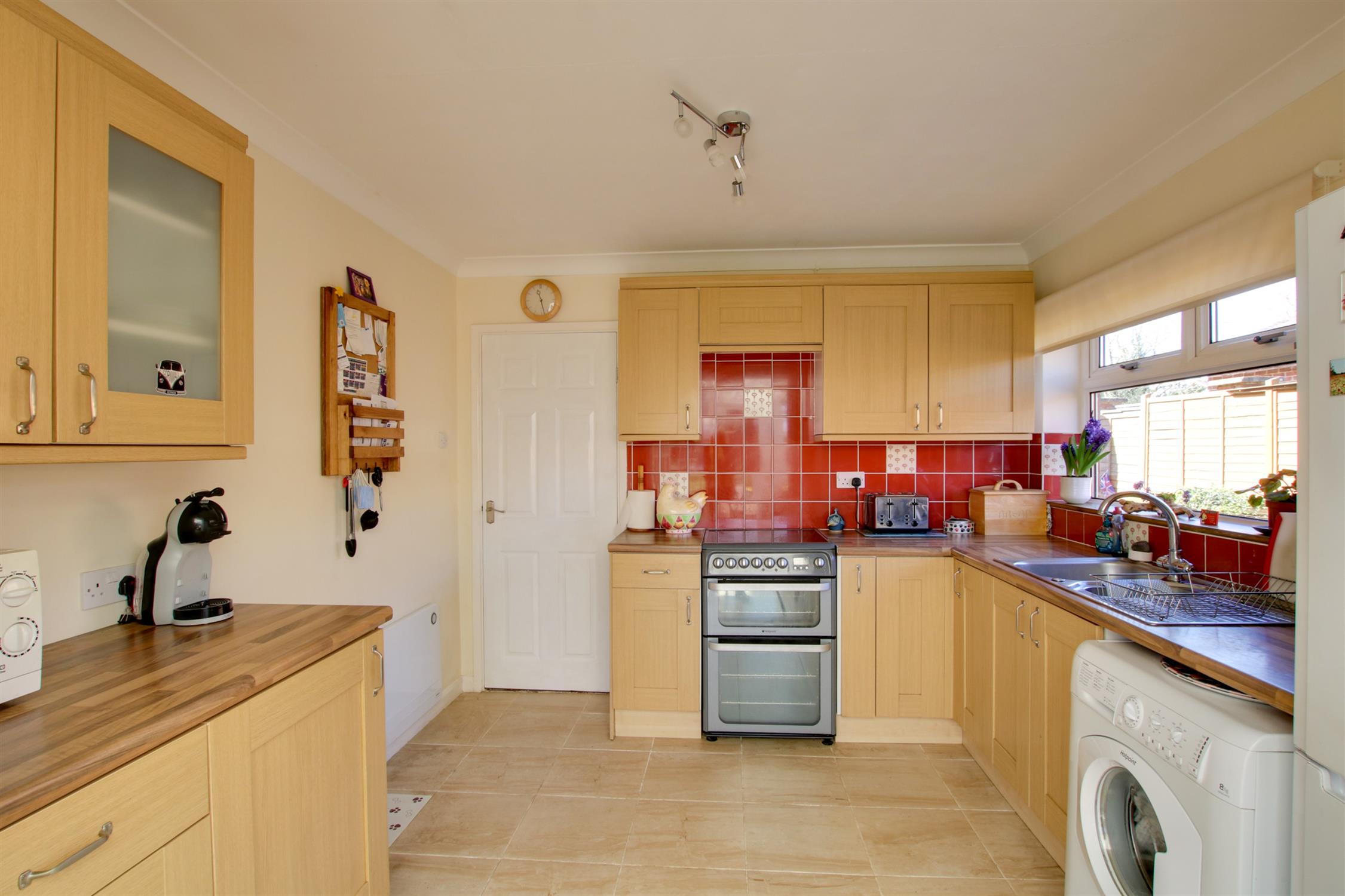 Fitted with a range of base cupboard, drawer and wall units with tiled splashbacks. Appliance space for electric cooker, washing machine and fridge/freezer. Double glazed window to the side aspect. Double opening doors to: