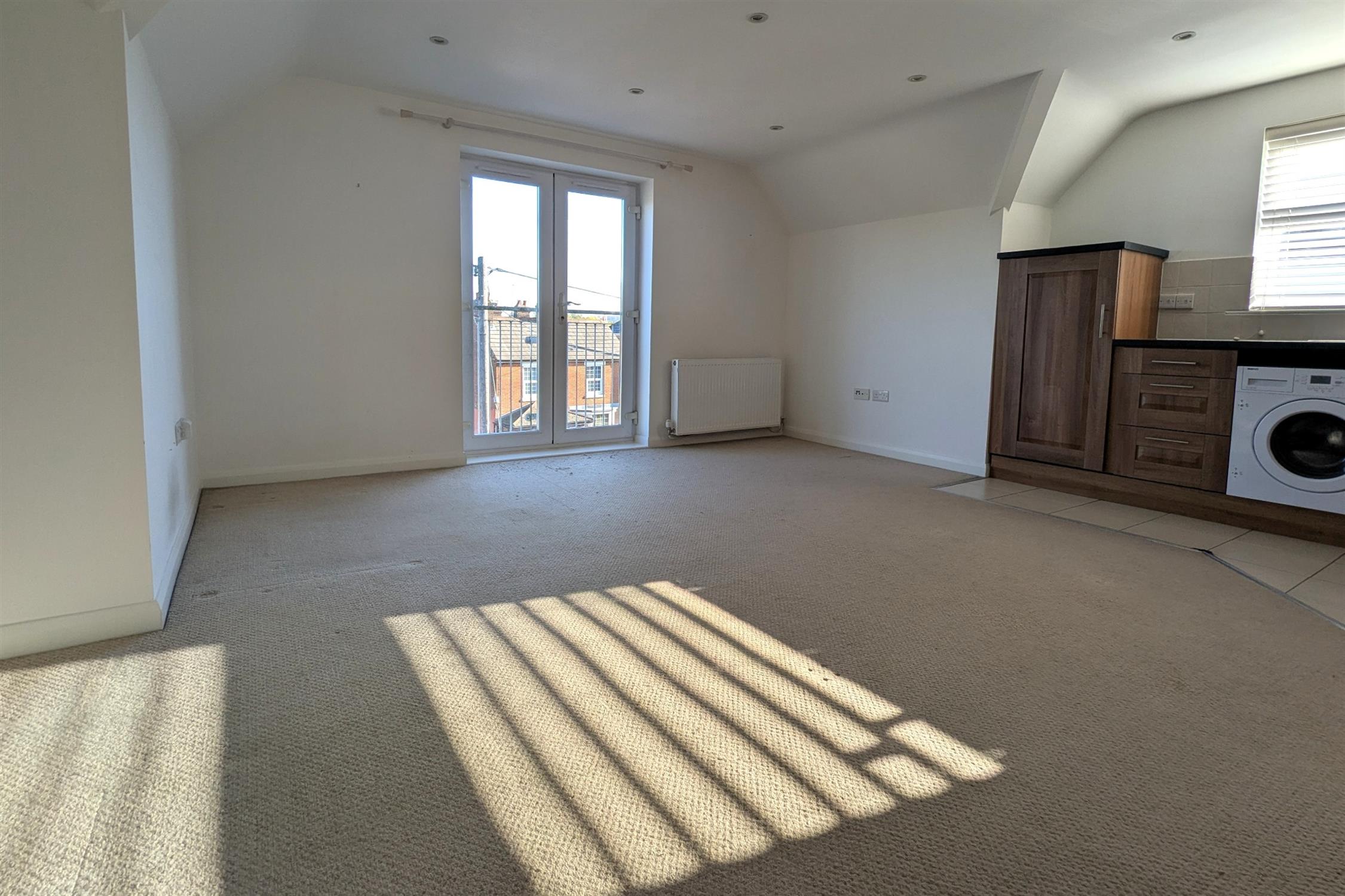 LOUNGE/KITCHEN: Good-sized living room with Juliet balcony and fitted kitchen with oven, gas hob, fridge/freezer, dishwasher and washing machine.