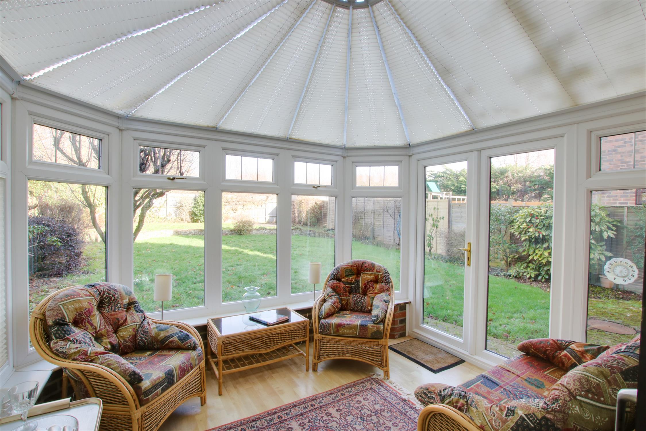 Well positioned with a view of the rear garden, double glazed with double opening doors to the garden. Two wall light points.