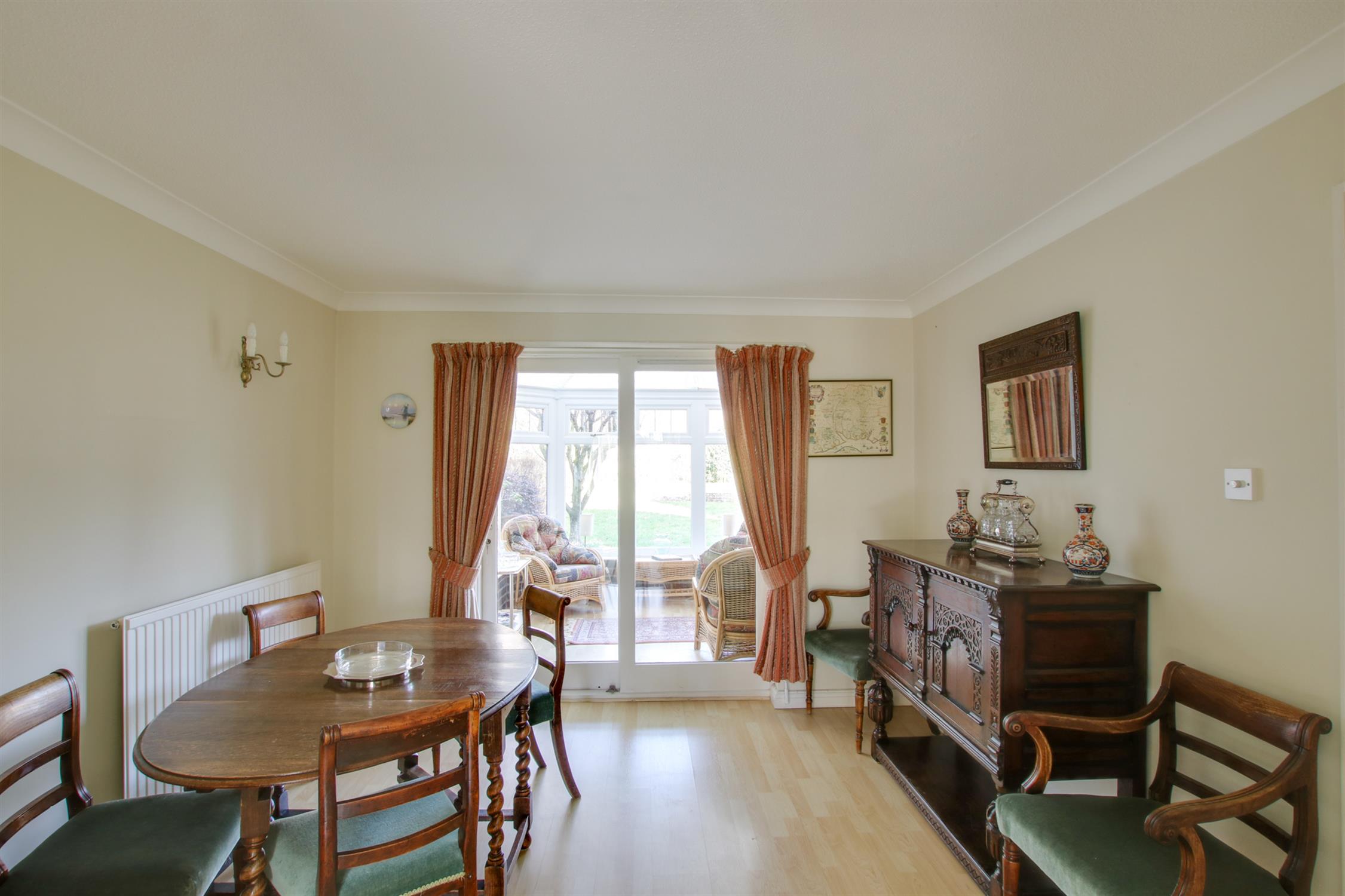 A good sized dining room with two wall light points, radiator and glazed sliding doors opening to the: