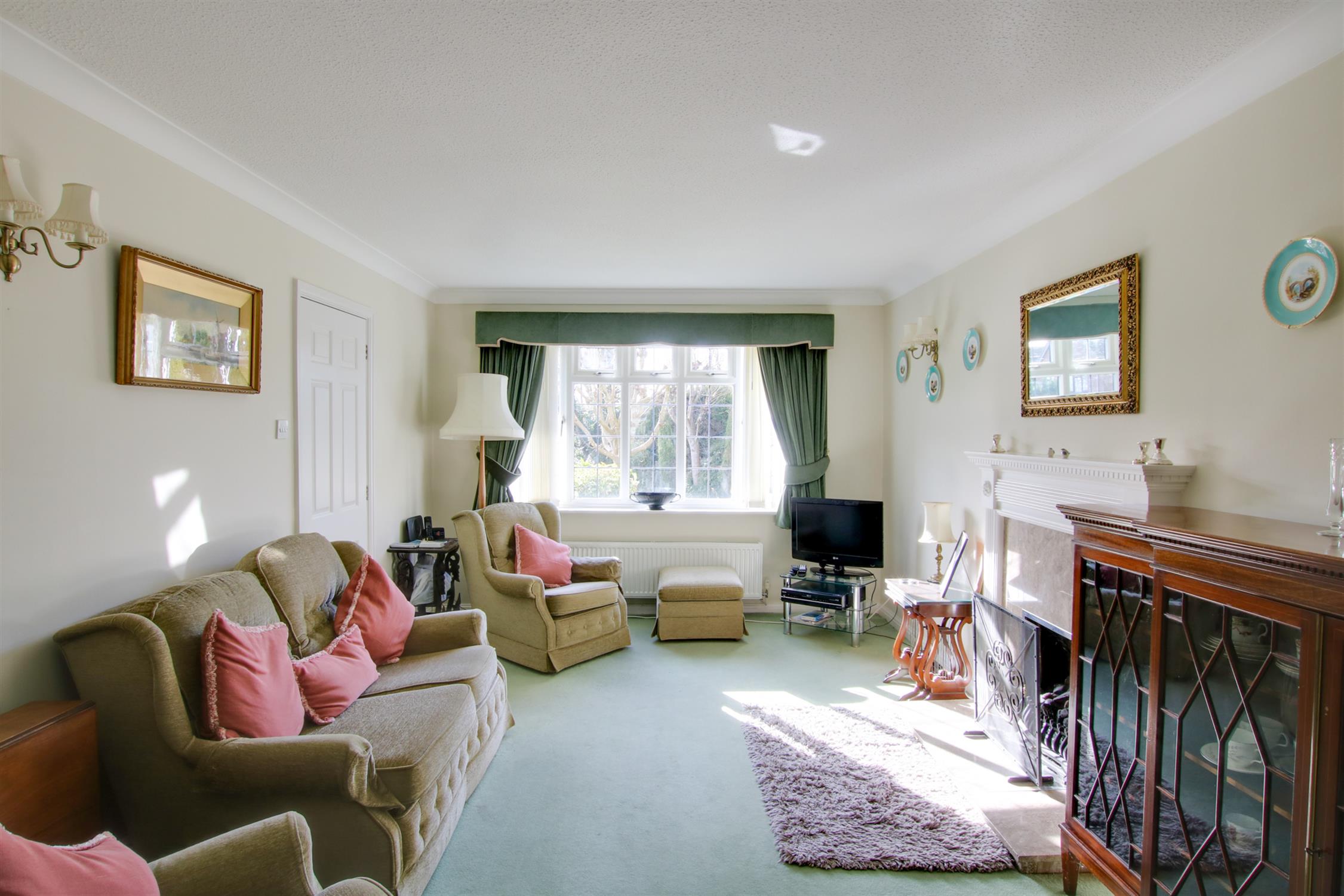 Double glazed window to the front elevation, overlooking the garden. Fireplace surround with fitted gas fire. Radiator. Three wall light points. Double doors opening to:
