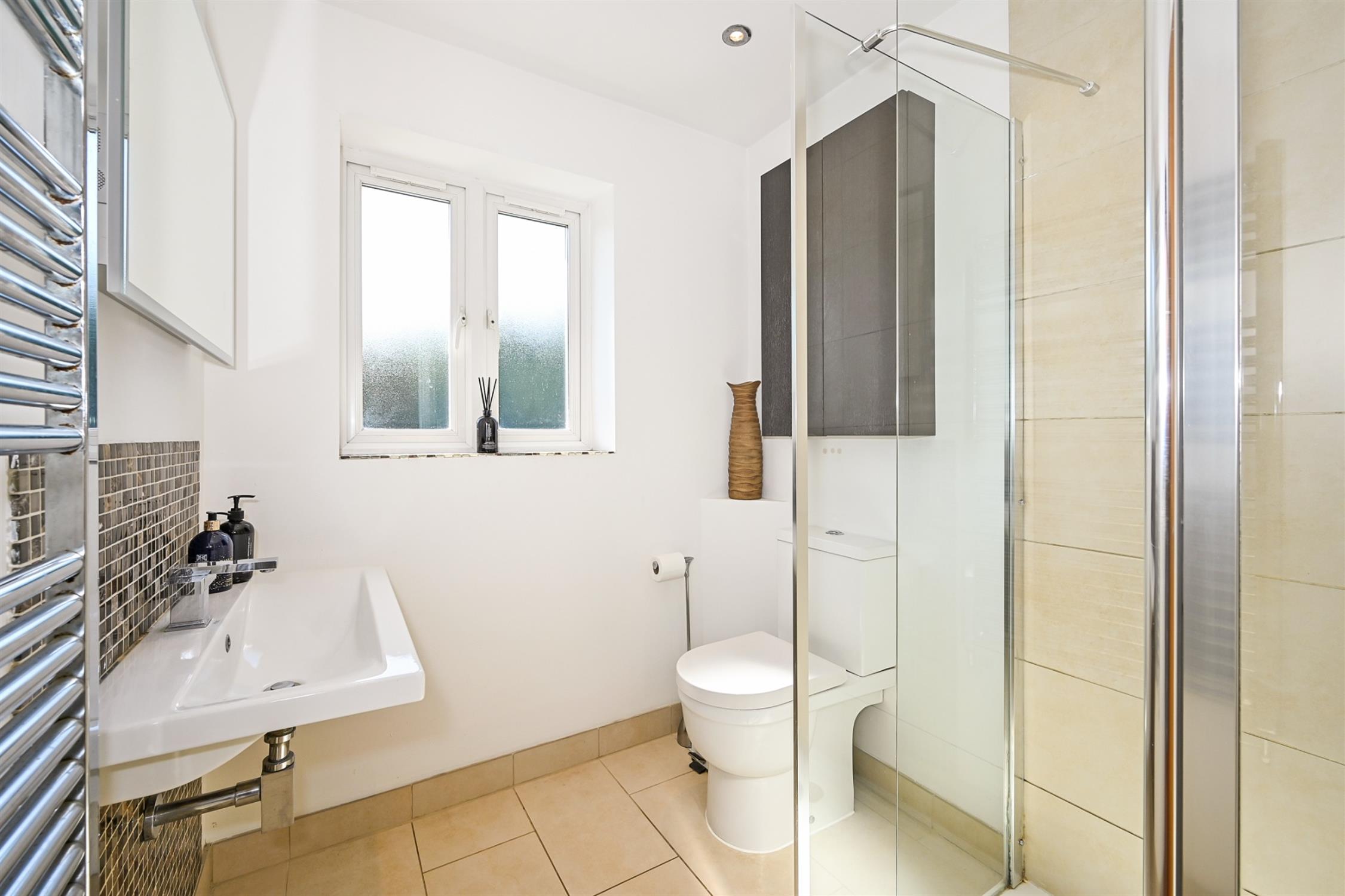 Fitted with a white suite, comprising WC, wash hand basin with LED mirror over and Bluetooth function for music. Shower cubicle. Window to the rear aspect. Chrome towel radiator. Tiled floor and underfloor heating.