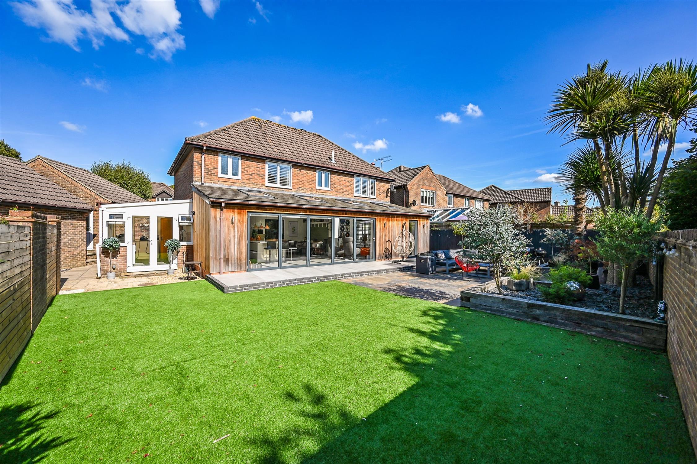Impressive and spacious family home, lying within a great residential location just a walk away from Bishop's Waltham. The property nestles uniquely into the back drop of the Bishop's Waltham Moors conservation area, and is perfectly placed for local walking. The house has been extended and refurbished over recent years to provide an exceptionally stylish, modern and beautifully presented home - ideal for family living and entertaining. There are four bedrooms with an en-suite shower room to the main bedroom and family bathroom. On the ground floor, a spacious entrance hall, cloakroom and study.