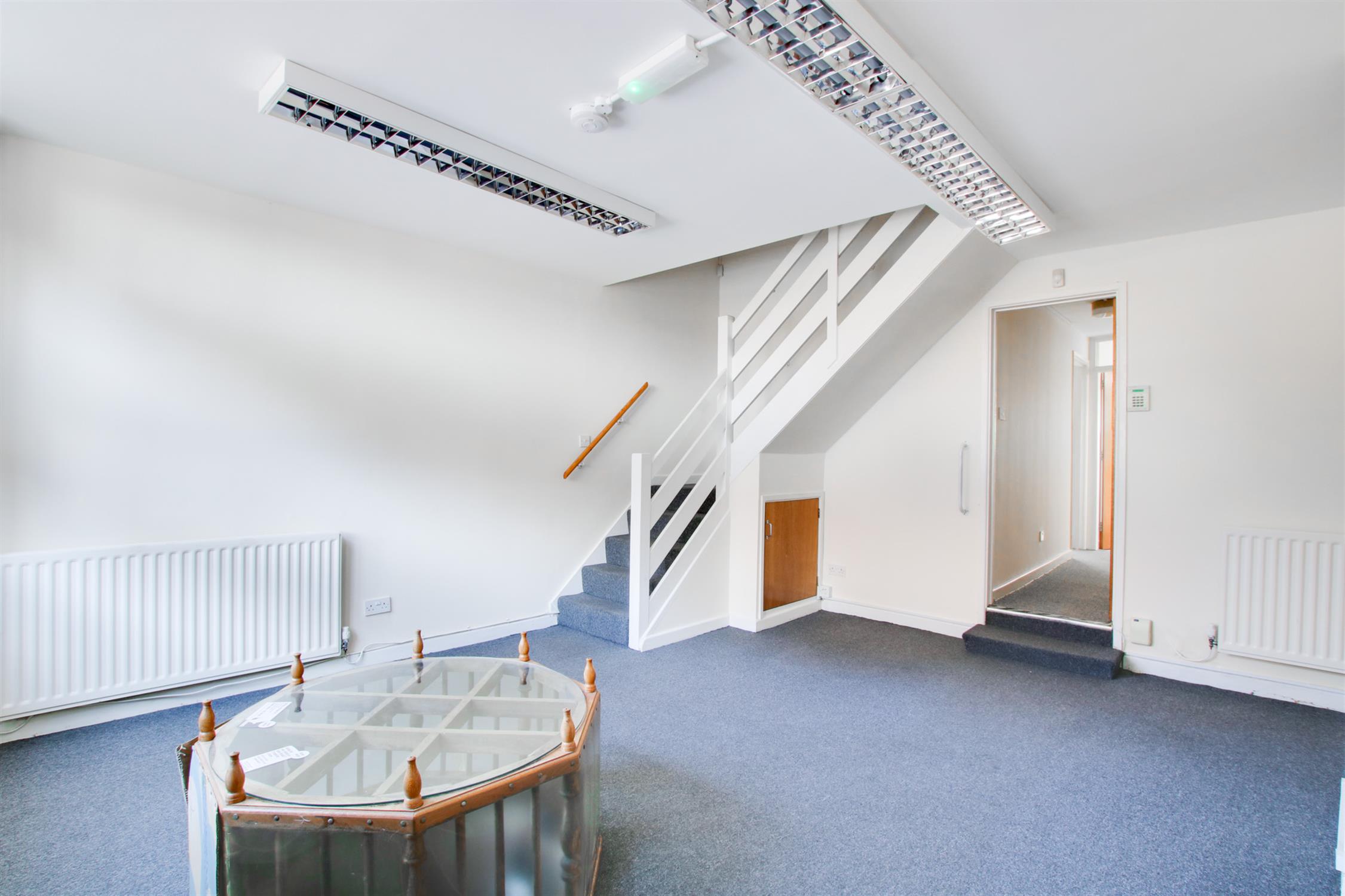 Spacious room with a 'feature exposed well'. Double glazed window to the front aspect, two radiators. Stairs leading to first floor, with under-stairs cupboard.