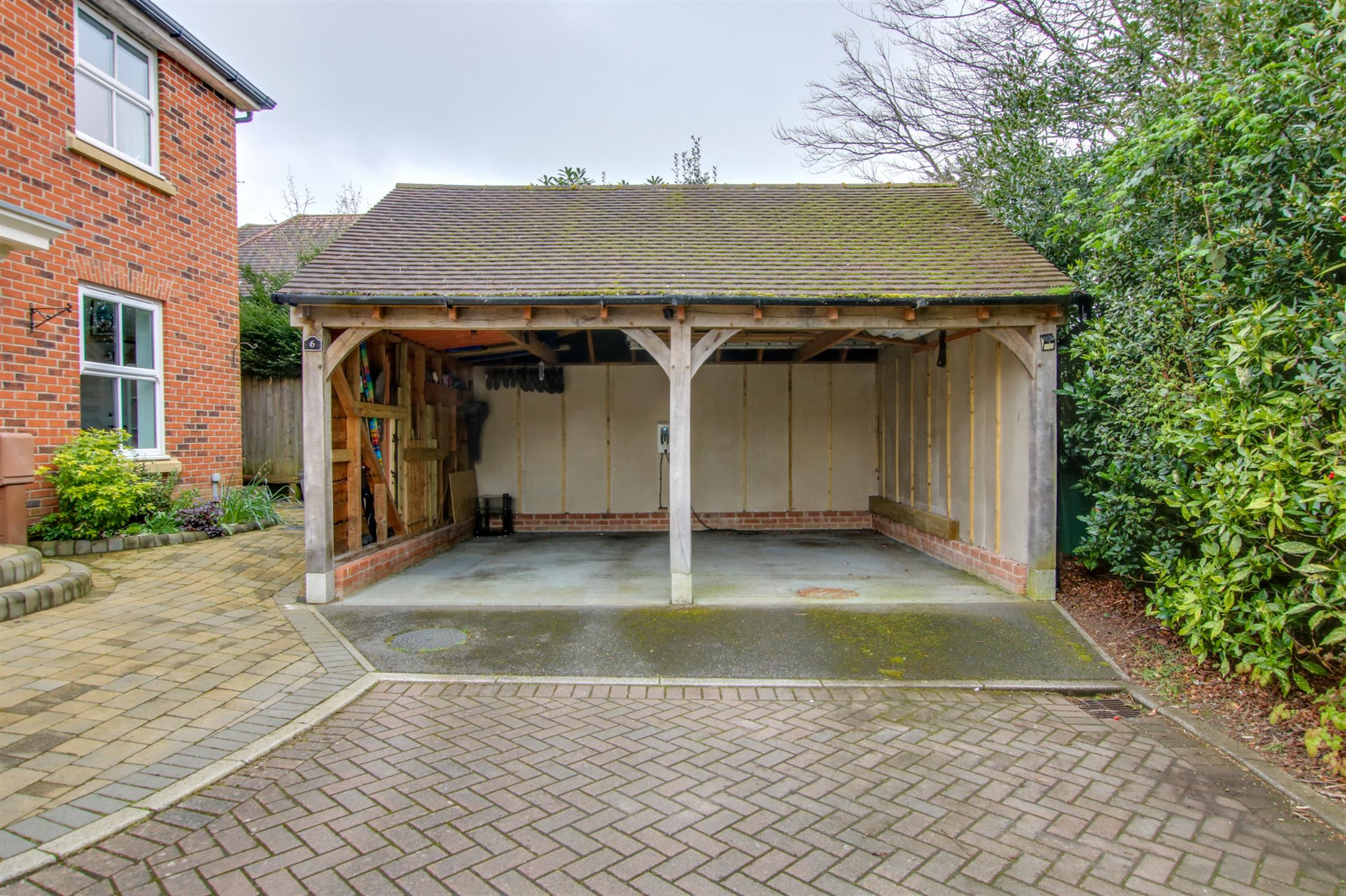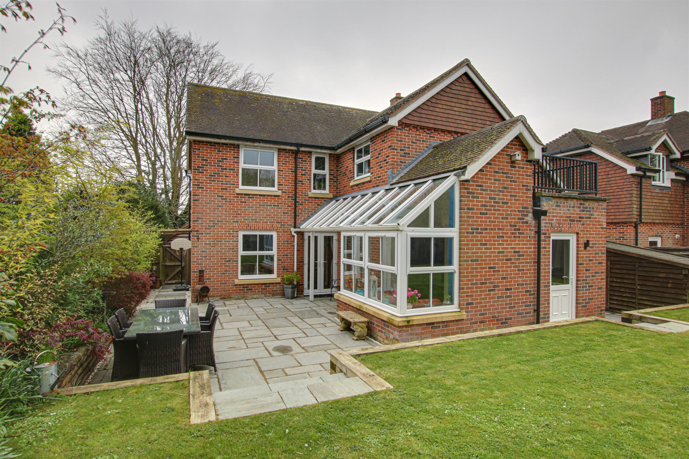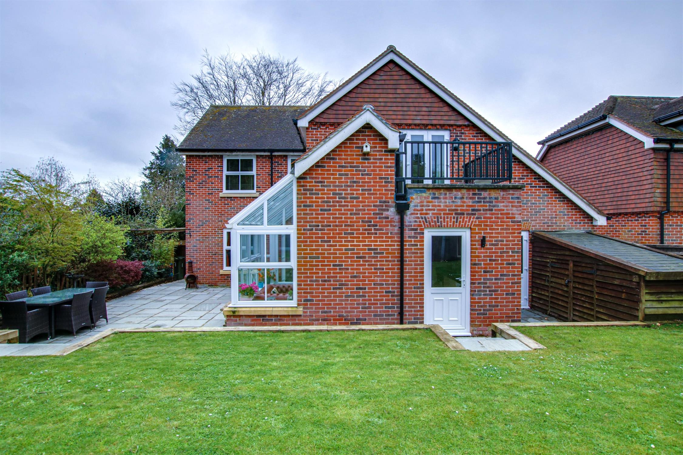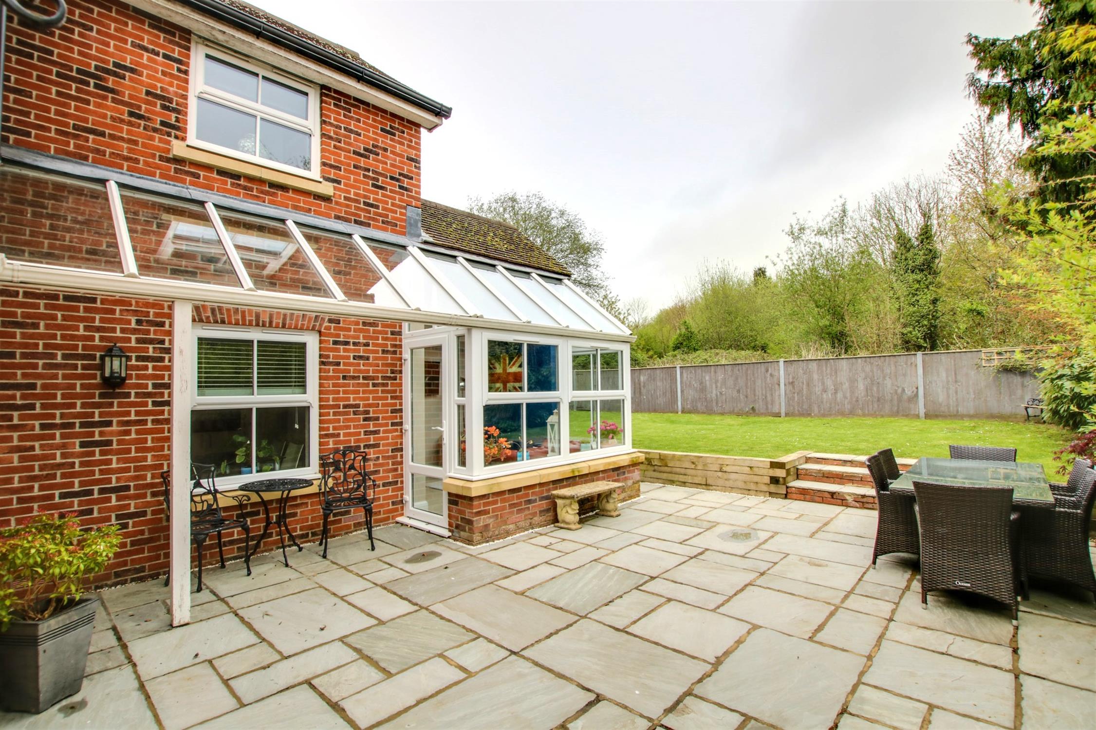 To the front of the property a block paved driveway provides for parking and turning and leads to the ATTACHED GARAGE, with up and over door. Personal door to the rear garden. There is a DETACHED DOUBLE CAR BARN, which provides for additional covered parking and storage. A side access gate leads to the rear garden, which is landscaped and enclosed. A great size terrace area adjoins the side of the house, where there is also an attractive and useful glazed Verandah. The remainder of the garden is fence enclosed and mainly laid to lawn with some planting. There is a generous size store, adjoining the rear of the garage.