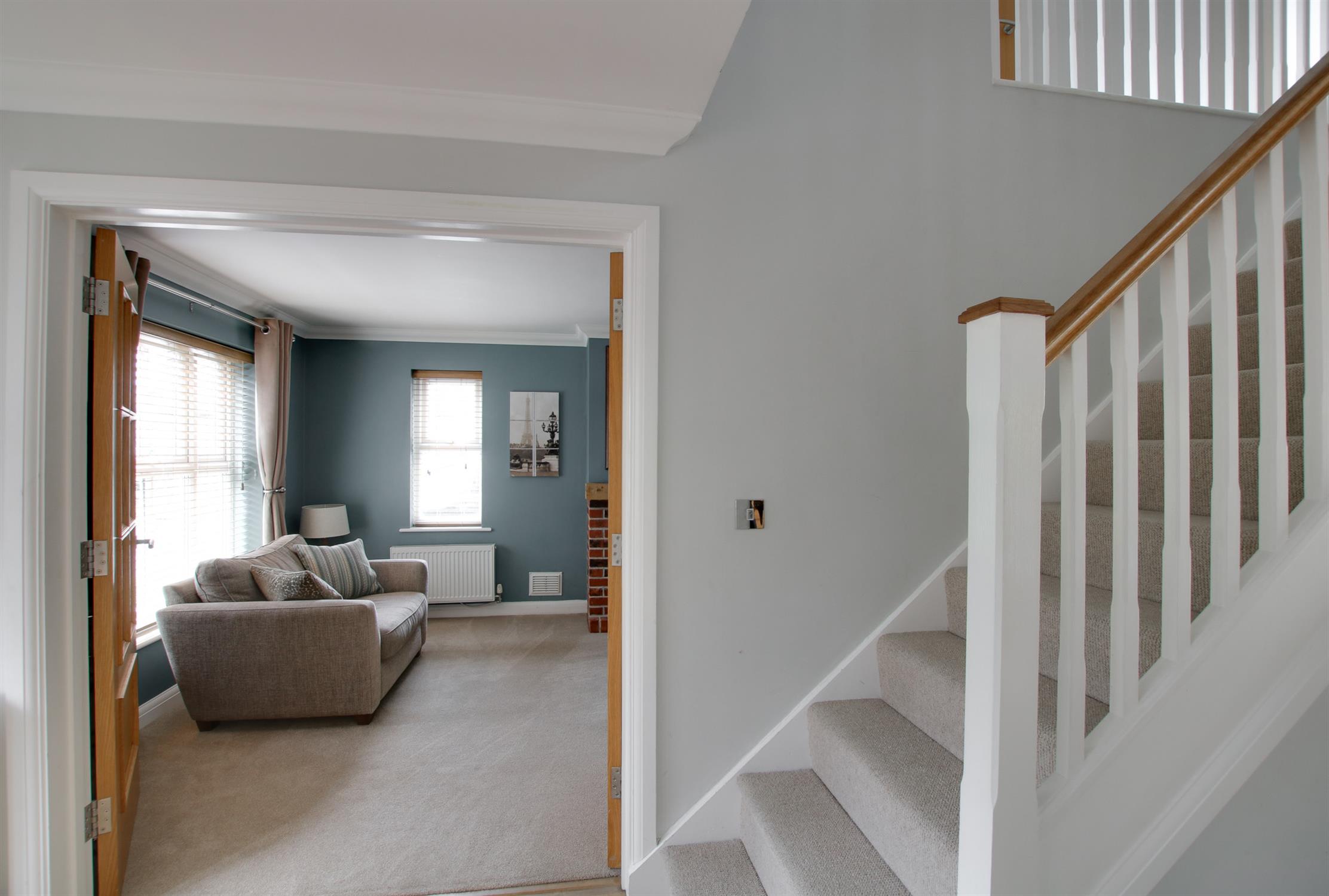 Stairs leading to the first floor. Under-stairs storage cupboard.