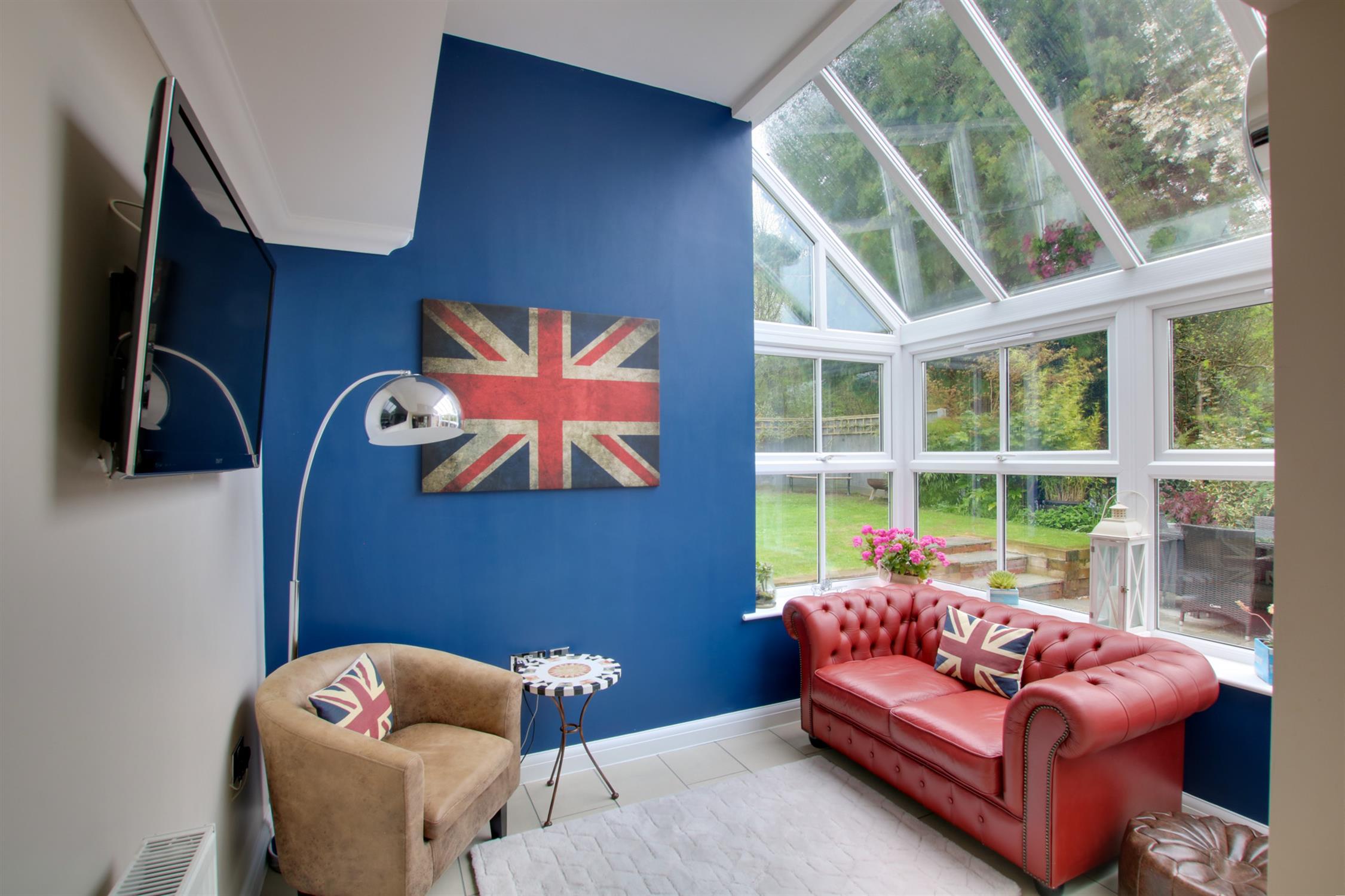 A super versatile room, with a part glazed roof and windows to the side and rear aspect, overlooking the garden and side terrace area. Tiled floor. Radiator. Door leading to rear garden.