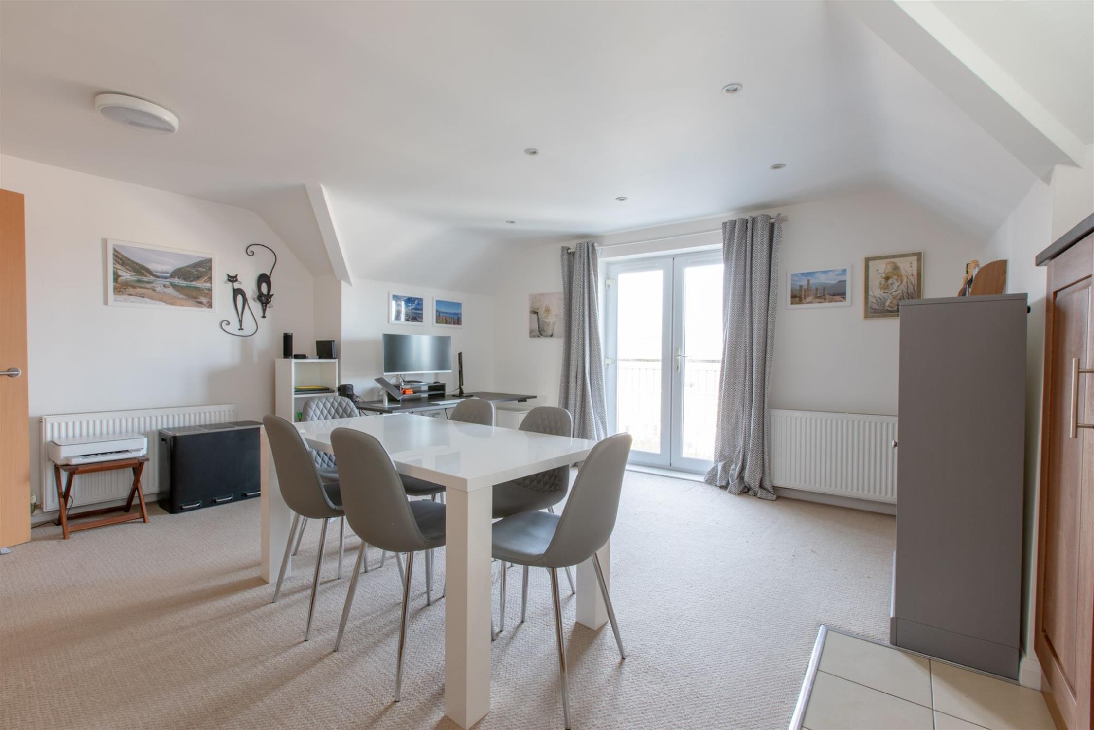 Spacious and stylish top floor apartment, lying within a super convenient location just a short distance away from Bishop's Waltham town centre. The property is quite unique, having the advantage of a share of the freehold, its own garage and generously extending to just over 1000 square feet of living space. Inside, the apartment benefits from gas heating, double glazing and the versatile accommodation in brief comprises: Communal entrance hall with stairs leading to the top floor. Entrance hall with double opening doors to the impressive open plan kitchen/dining/living room with French doors and Juliet balcony.