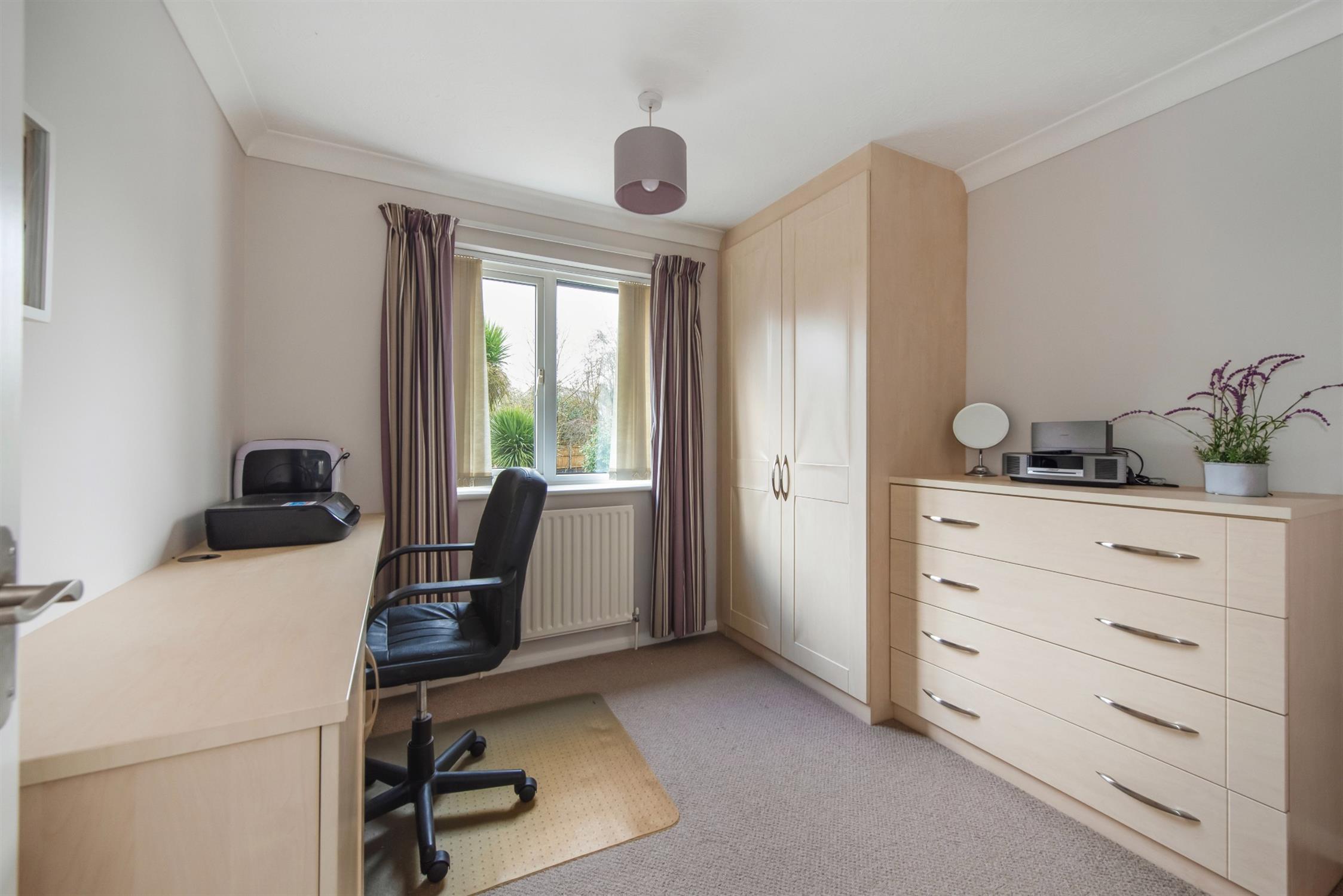 Single bedroom with fitted wardrobe and chest of drawers. Fitted desk with cupboard storage below. Radiator. Double glazed window to the rear aspect.