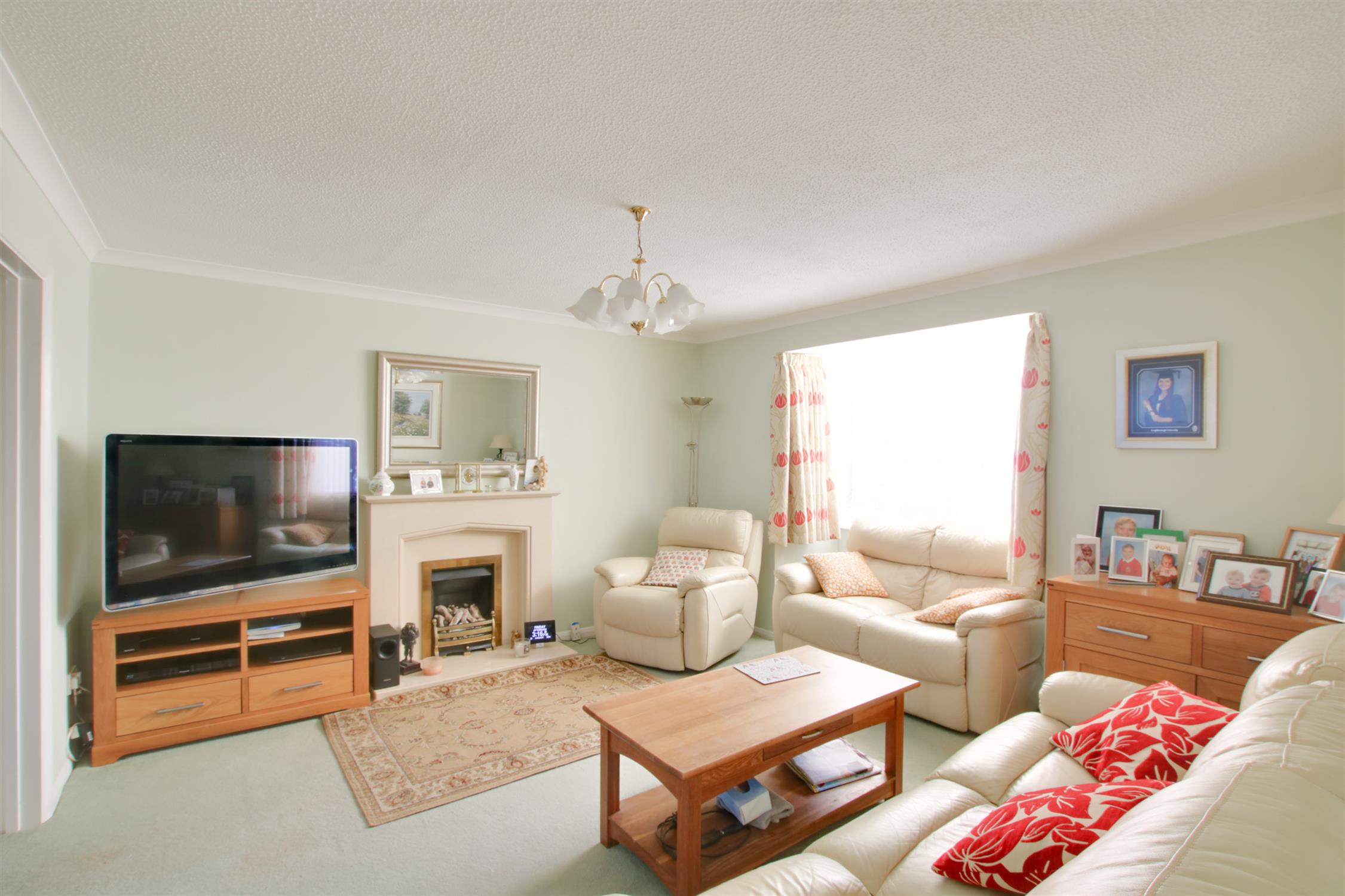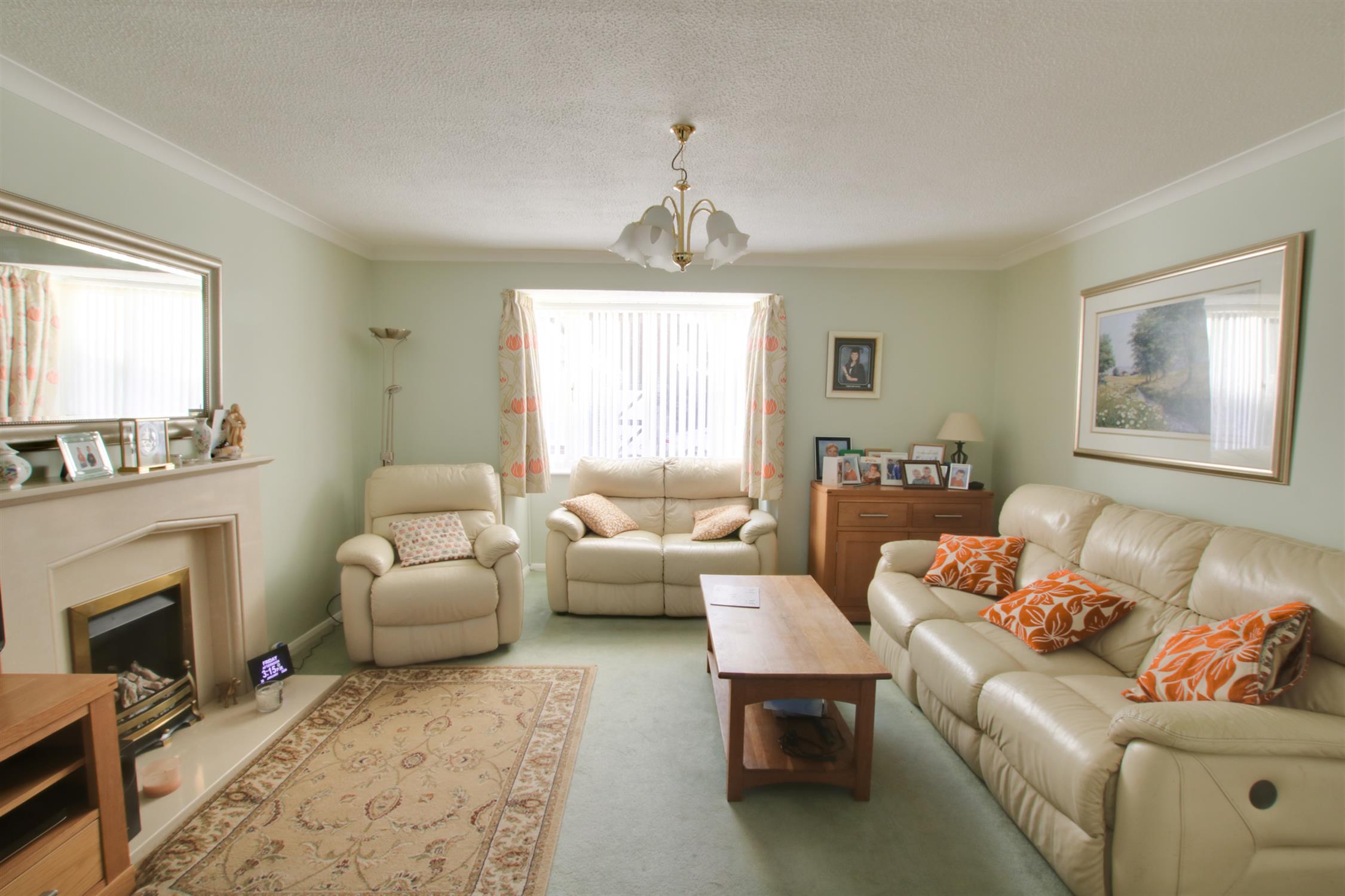 Double glazed bay window to the front aspect. Fireplace surround with gas fire. Radiator. Double doors opening to: