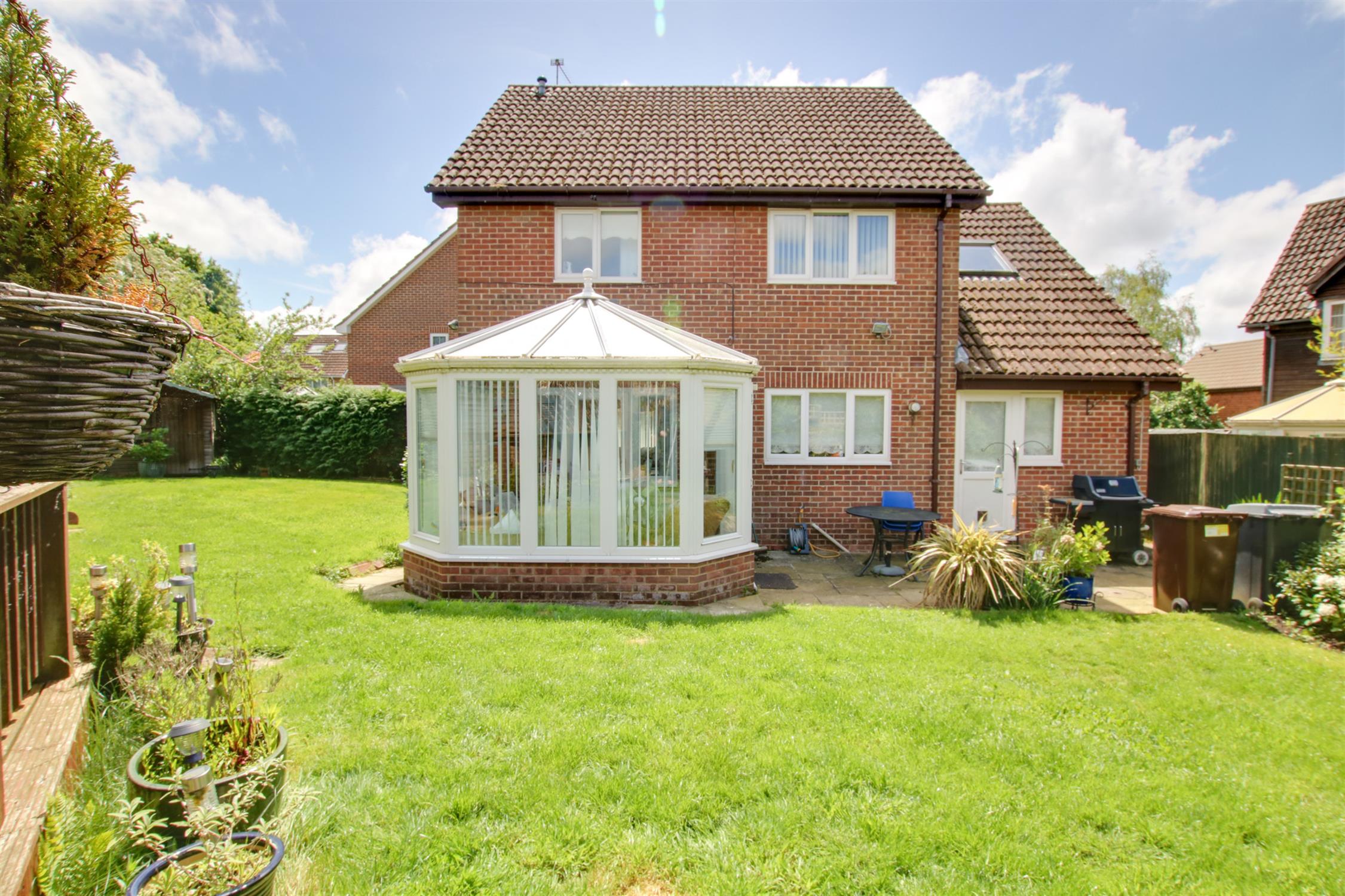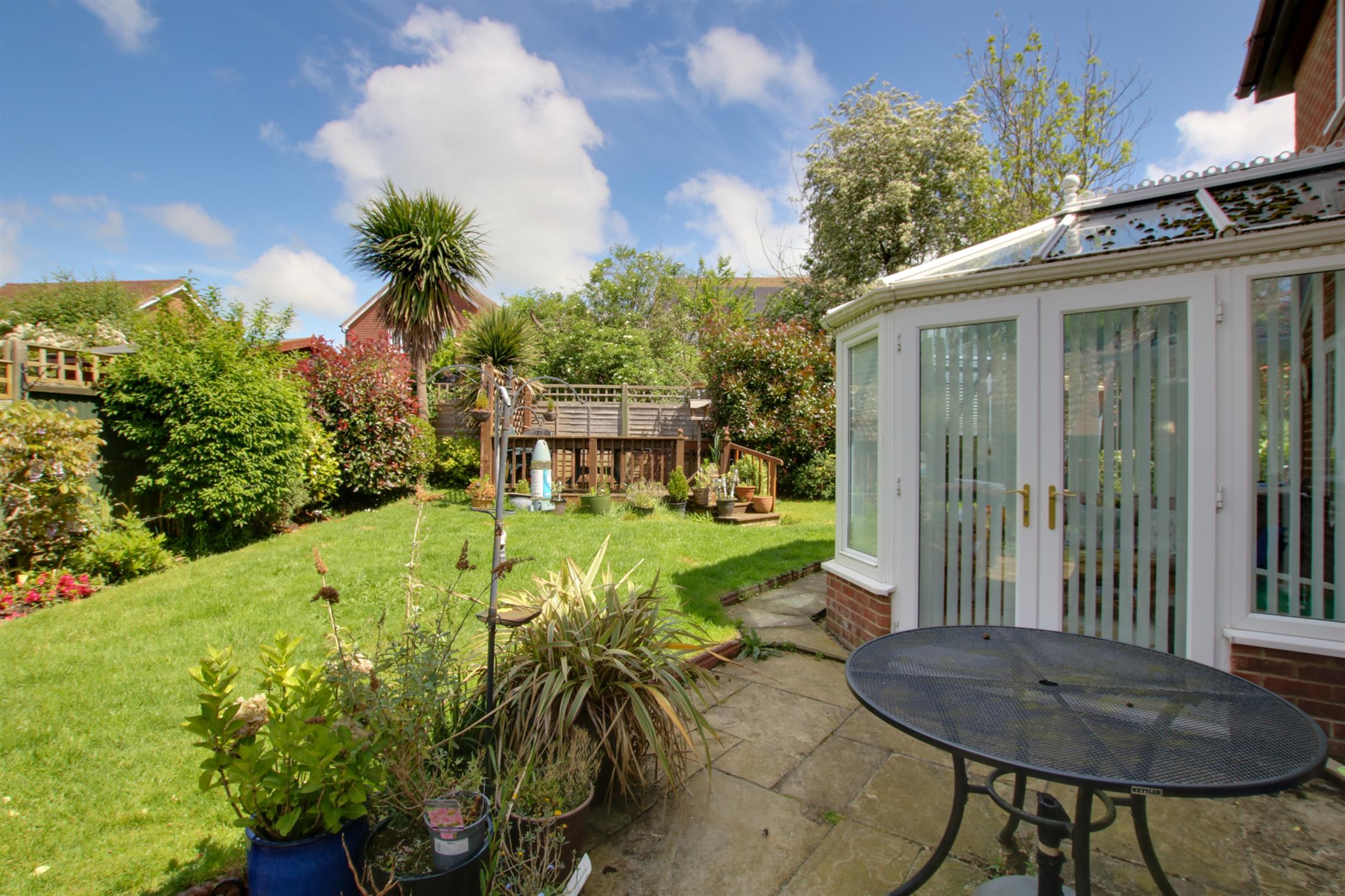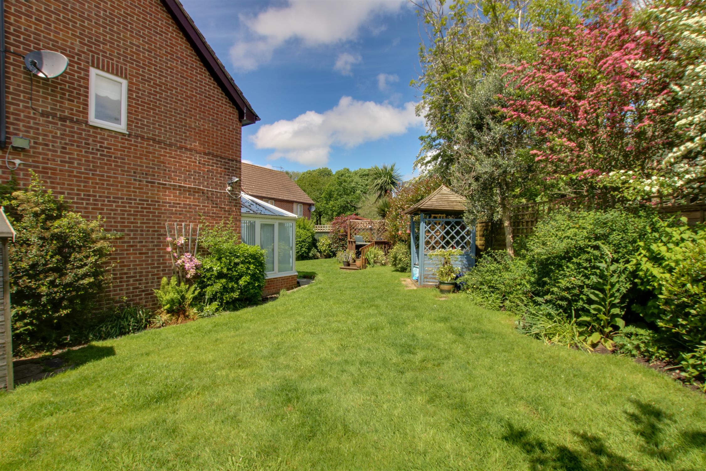 The gardens of the property are of a good size, extending to the front, side and rear of the property. To the front, mainly open plan with driveway parking, together with access to the garage. There is pedestrian access alongside the house to the rear garden, which is enclosed with a patio area and lawns which extend to the rear and side of the house. A raised decked terrace, along with established planting. Garden shed.