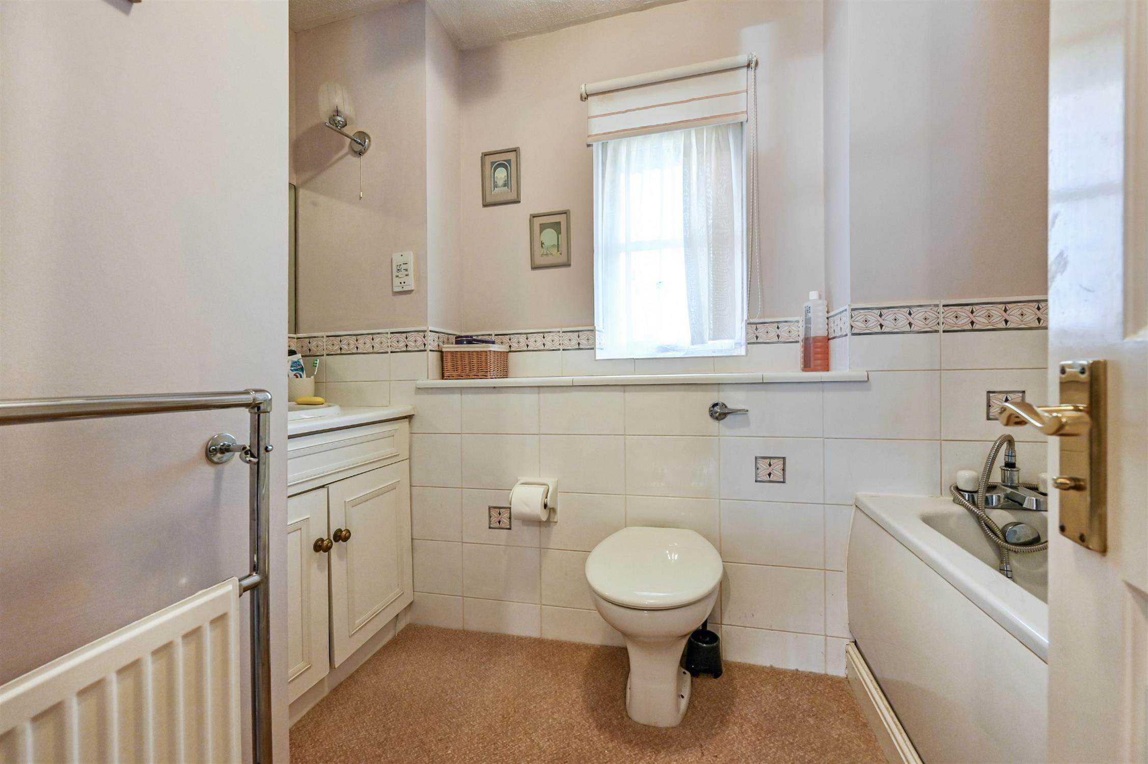 Fitted with a low level WC, wall mounted wash hand basin with tiled splashback. Radiator. Window to the side aspect.