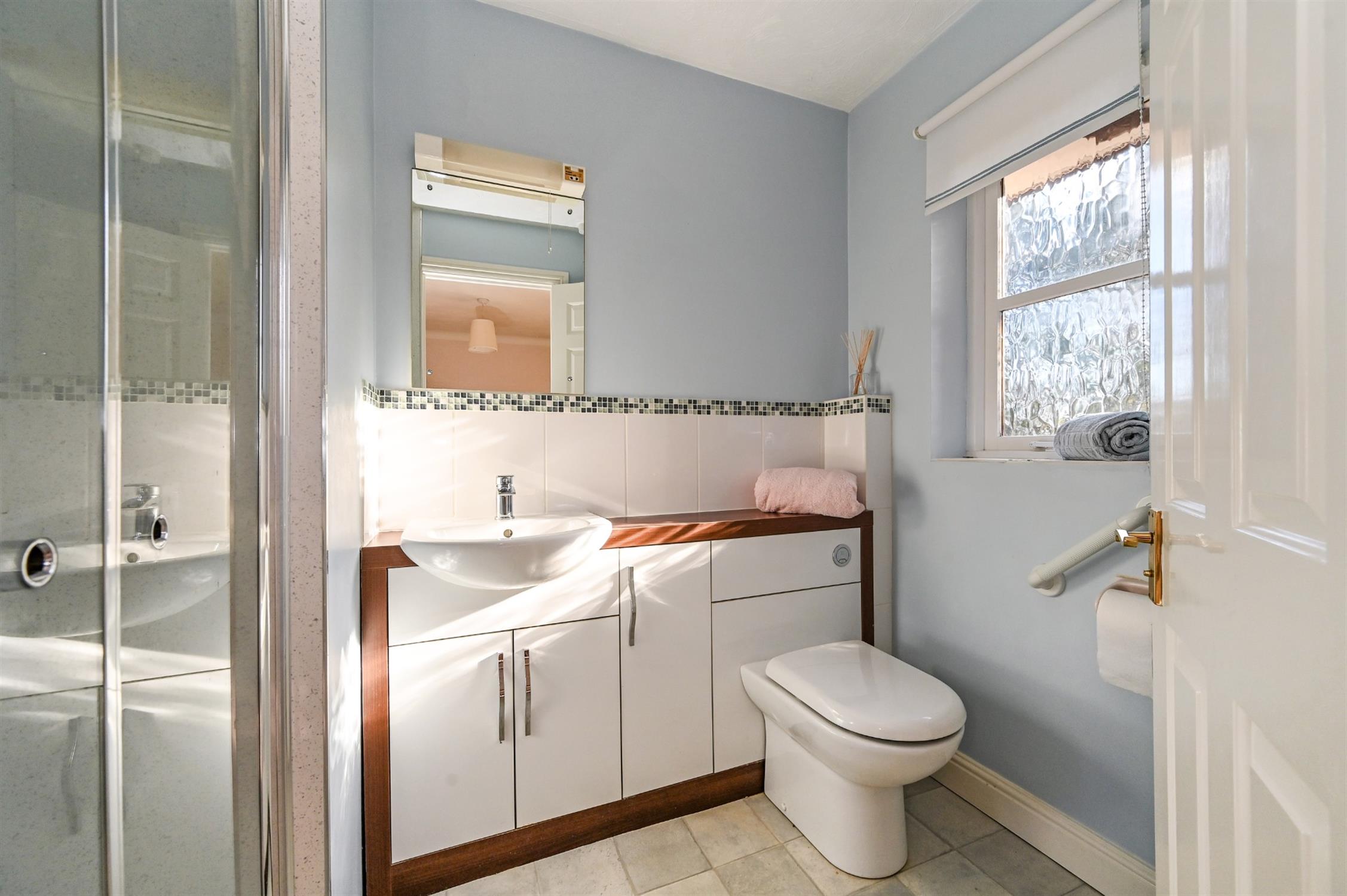 The en-suite has in more recent years been replaced with a white suite comprising a shower cubicle, fitted bathroom units incorporating an enclosed cistern WC and wash hand basin with mirror and light over. Heated towel rail and window to the front aspect.